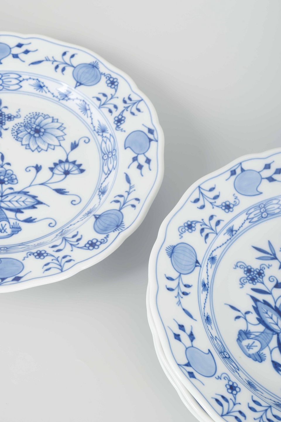 “Løgmønstret” er et af Meissens mest ikoniske mønstre, udviklet i midten af 1700-tallet og inspireret af asiatisk porcelæn. Dekorationen, der oprindeligt skulle gengive granatæbler og ferskner, blev senere opfattet som løg – deraf navnet. Serien er fortsat blandt Meissens mest populære og klassiske stel.