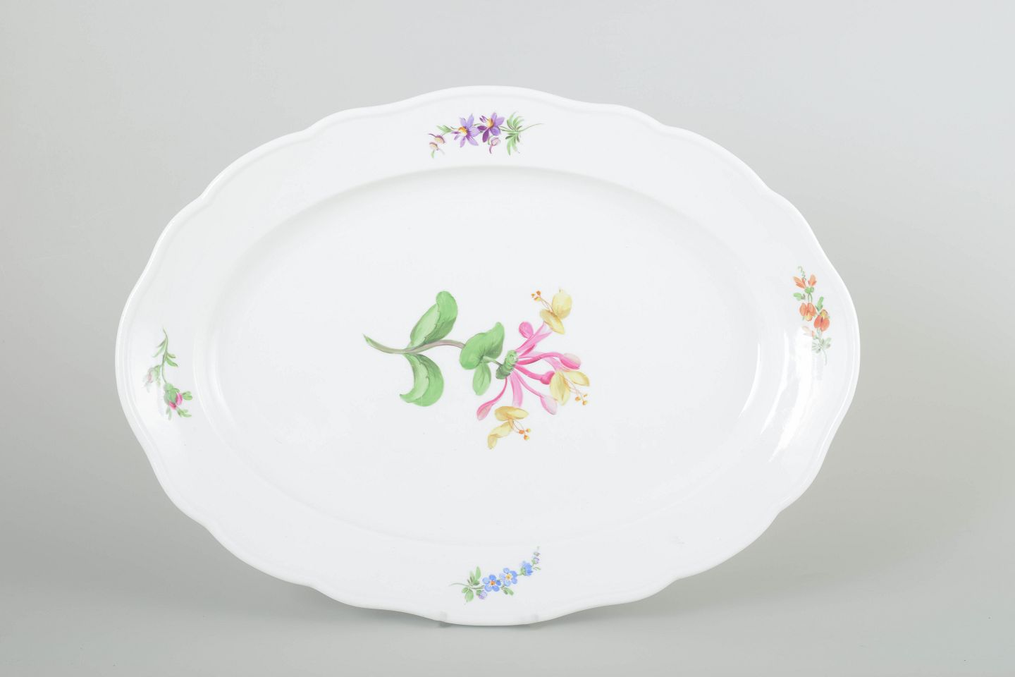 Meissen har siden begyndelsen af 1700-tallet været Europas førende porcelænsfabrik, kendt for sin håndmalede dekoration og tekniske perfektion. Blomsterdekorationerne, ofte inspireret af naturstudier, blev et symbol på manufakturens klassiske stil og håndværksmæssige kvalitet.