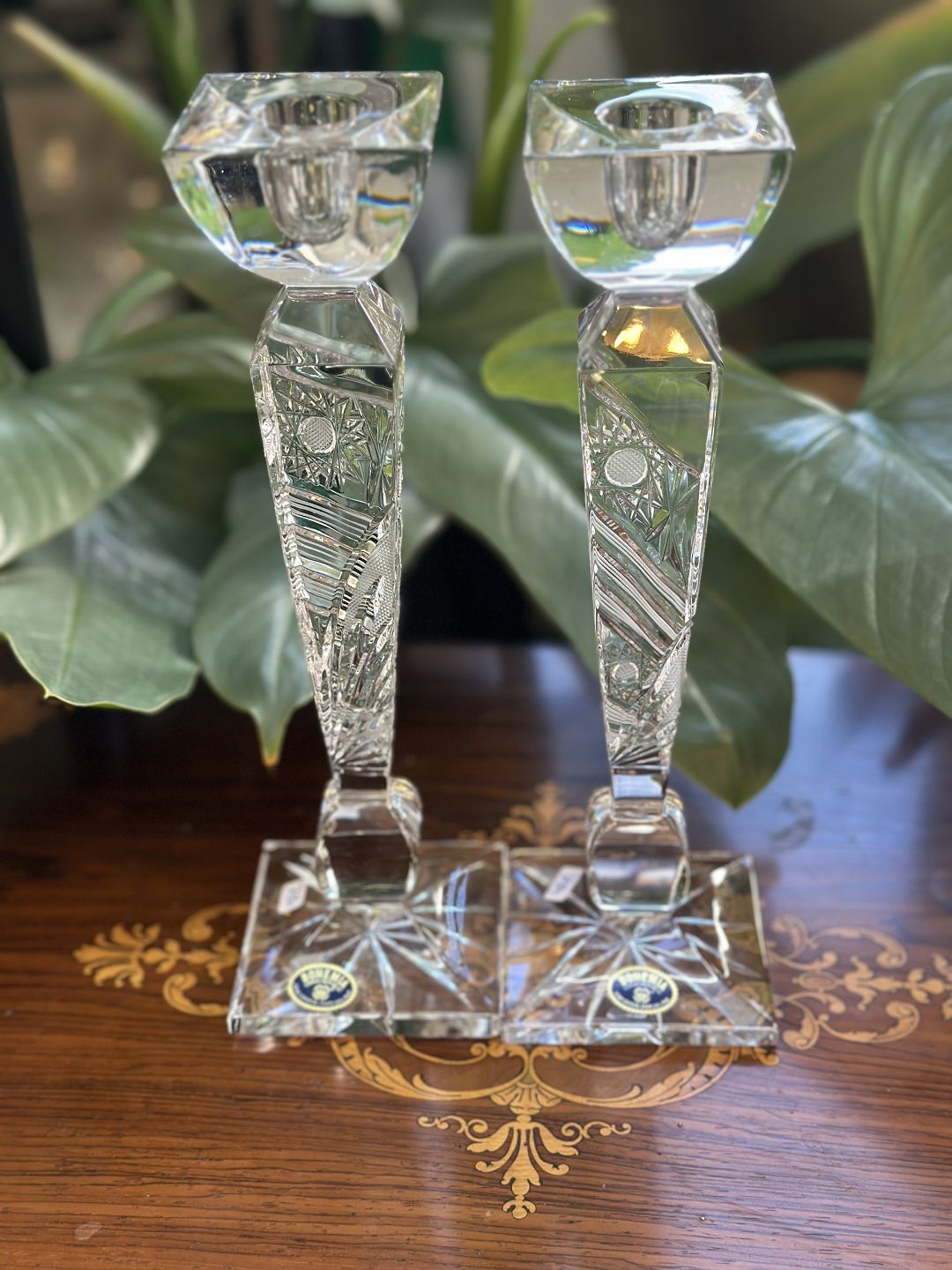 Håndslebet Bøhmisk blykrystal med over 24 % Pbofra 1980 erne -1990 erne , Originalt guldfarvet mærkat Bohemia Czech Republic .
