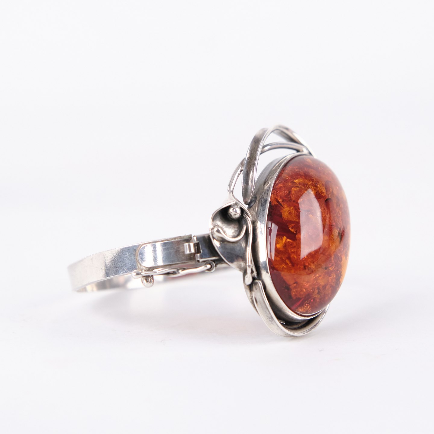 Armring i sølv med rav og sikkerhedslås. Unikt smykke design med rav.— Type: Armring