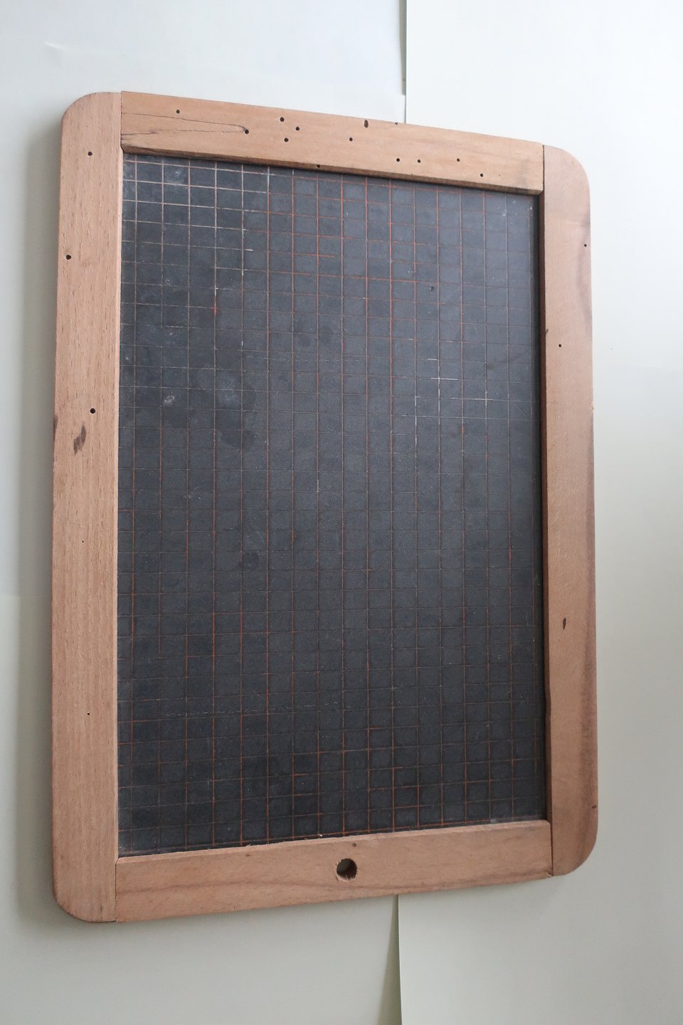Gammel skole tavle af skifer med ramme af træLinieret på den ene side og tern på den anden side