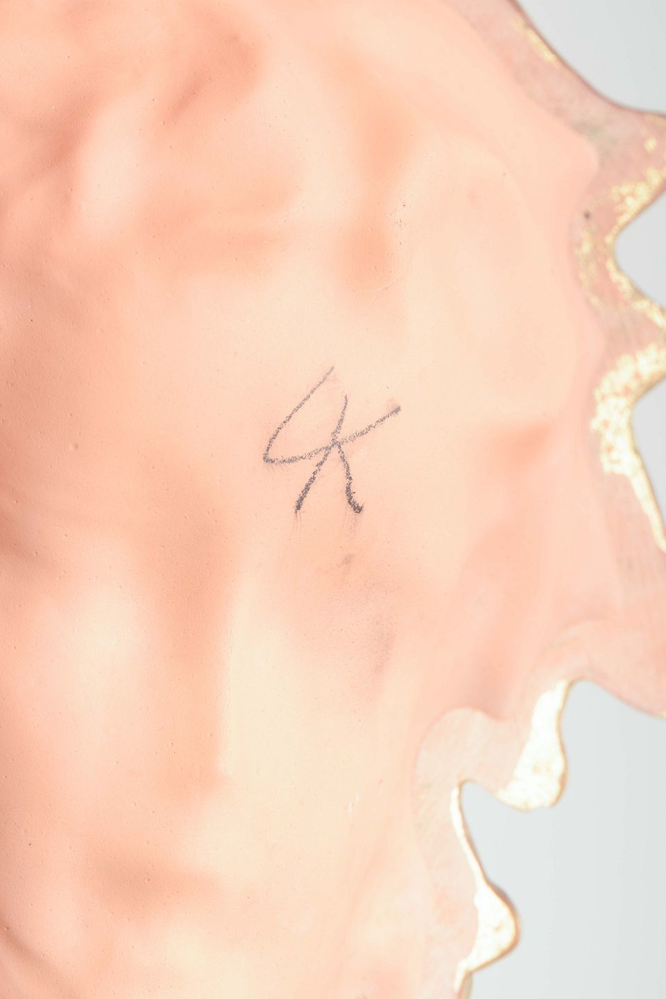 Italian wall relief, female head, 1950s.Decorative terracotta wall relief depicting a stylised woman’s head with large eyes, wavy hair and a loop earring. Finished in gold paint. Signed.