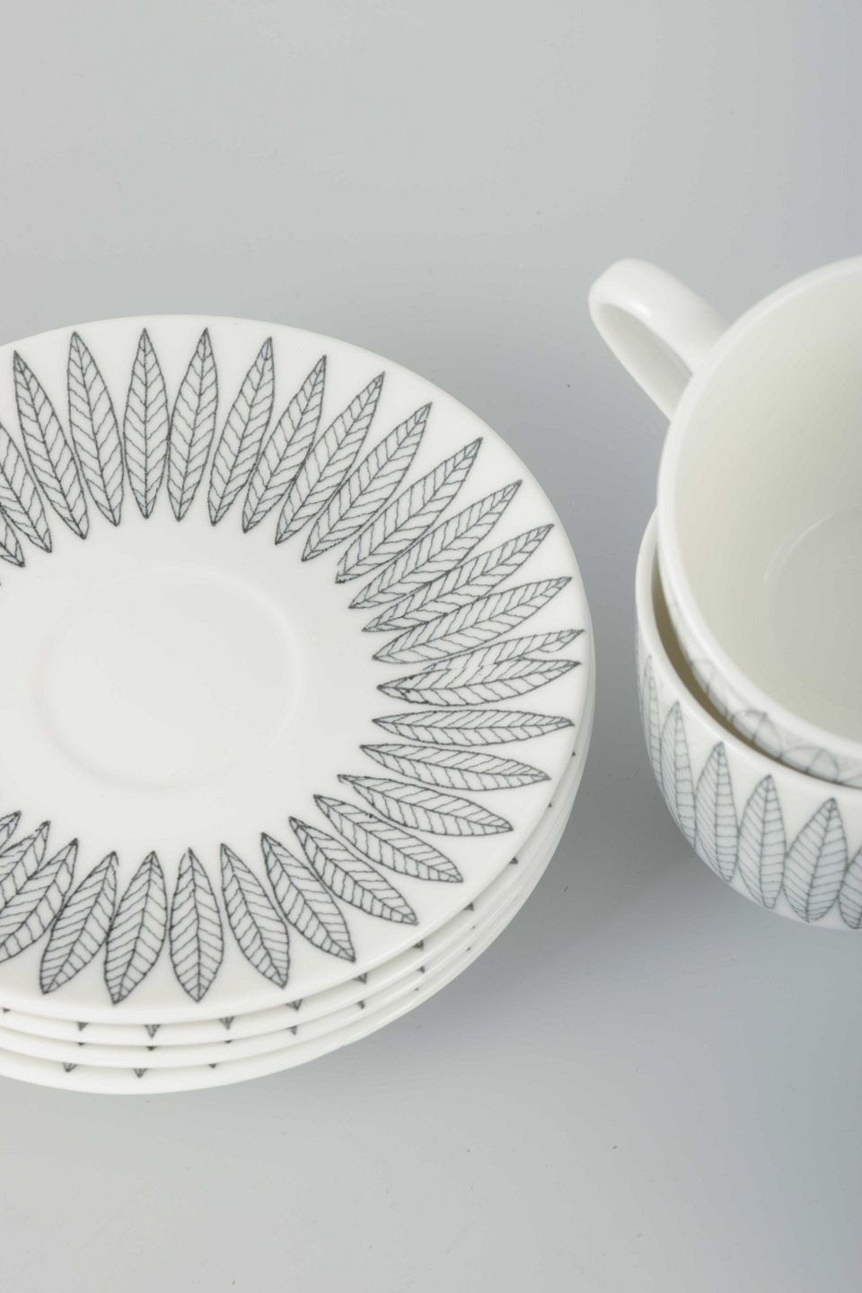 Stig Lindberg for Gustavsberg4 kopper og underkopper “Salix”, midten af 1900-tallet.