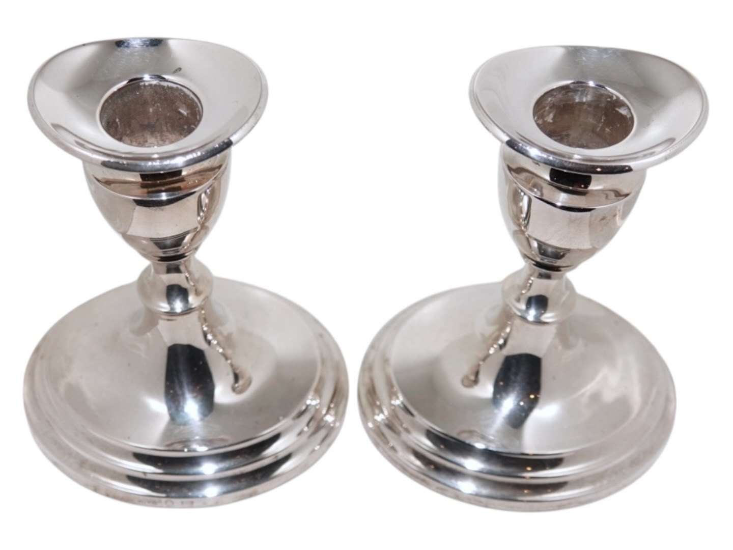 Willy Vollmers sølv, par lysetager med aftagelig lysmanchet.Stemplet "WIVO 830S" - Sølvsmed Willy Vollmers som var sølvsmed i København fra 1937 og disse er fra 1966.