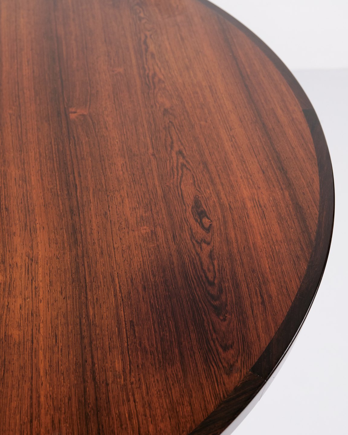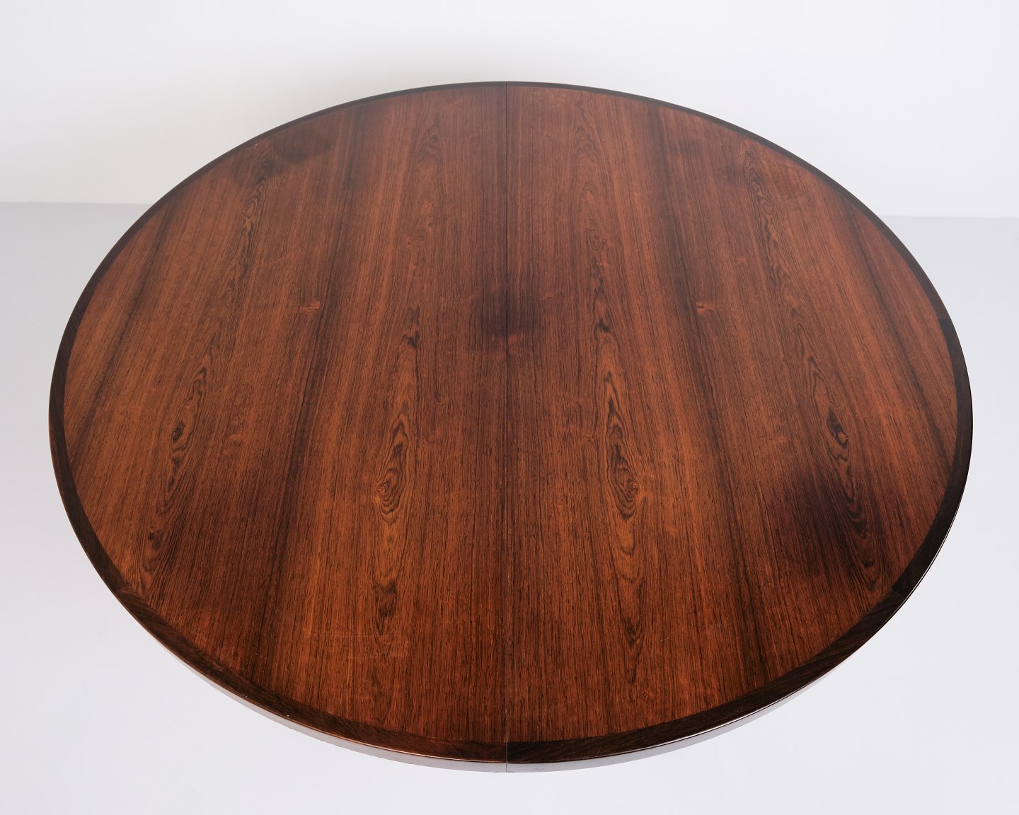 Rundt spisebord i palisander af C.J. Rosengaarden. Dansk design fra 1960’erne. Udtræk med to plader à 50 cm.