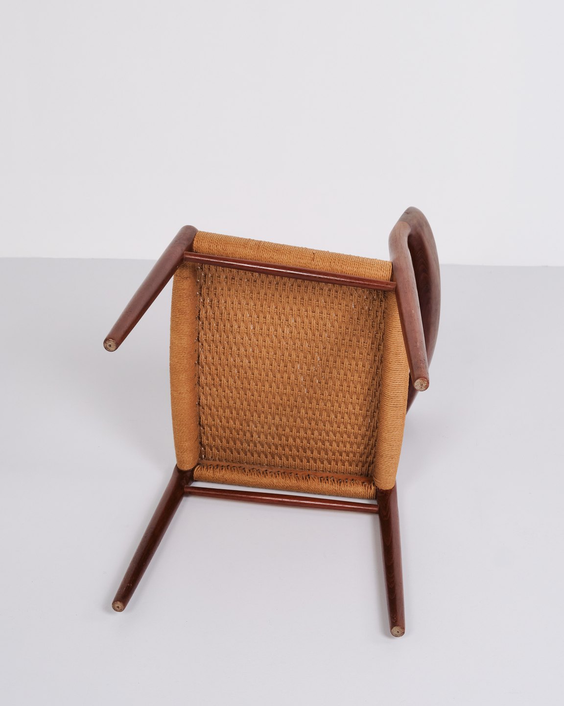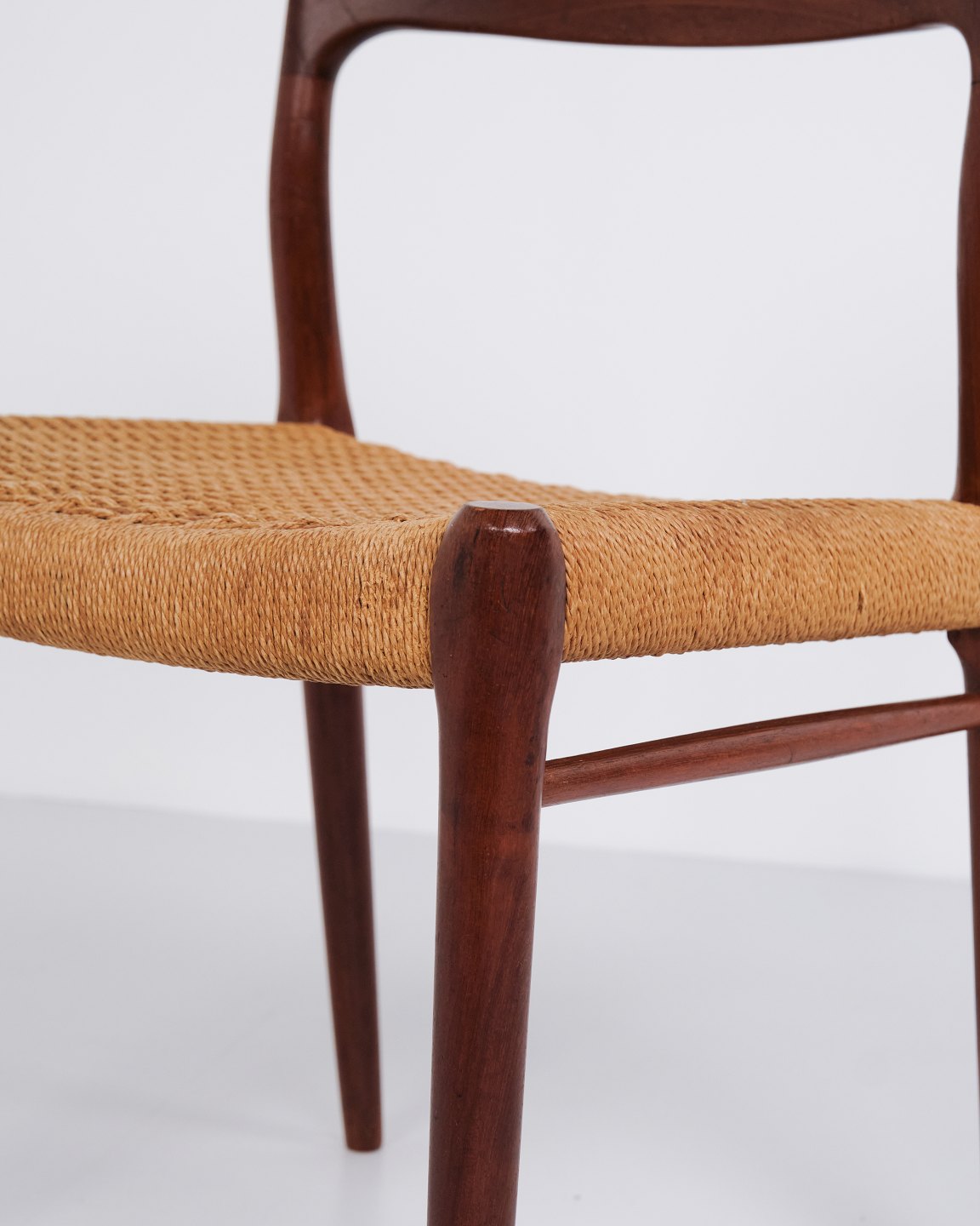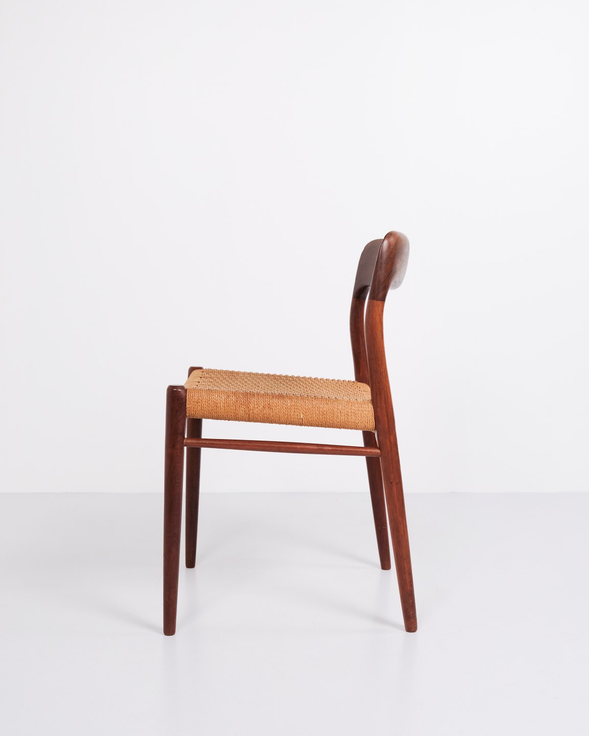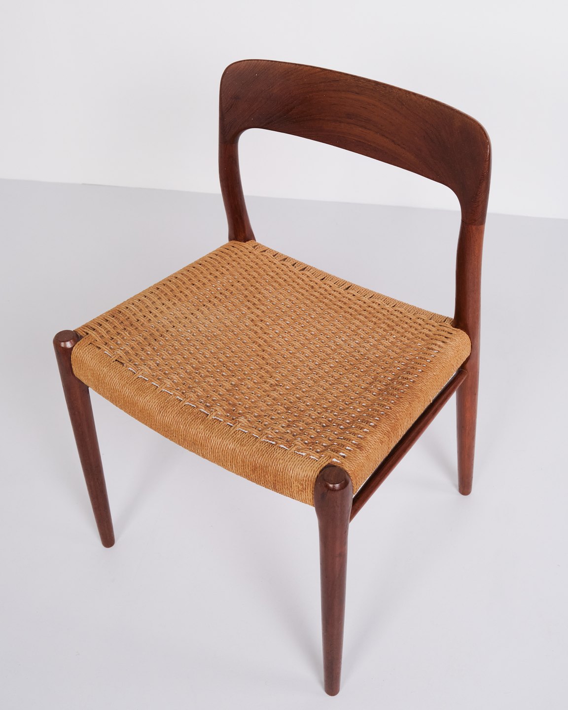 Sæt af Fem N.O. Møller spisebordsstole, model 75. Teak og papirflet, 1960’erne.— Oprindelse: Danmark