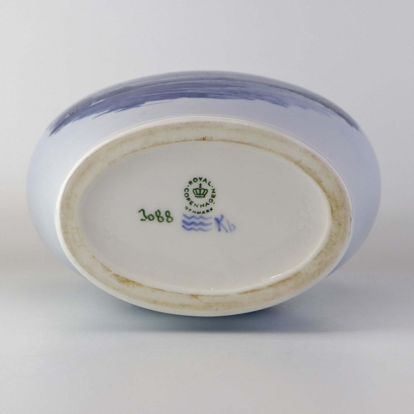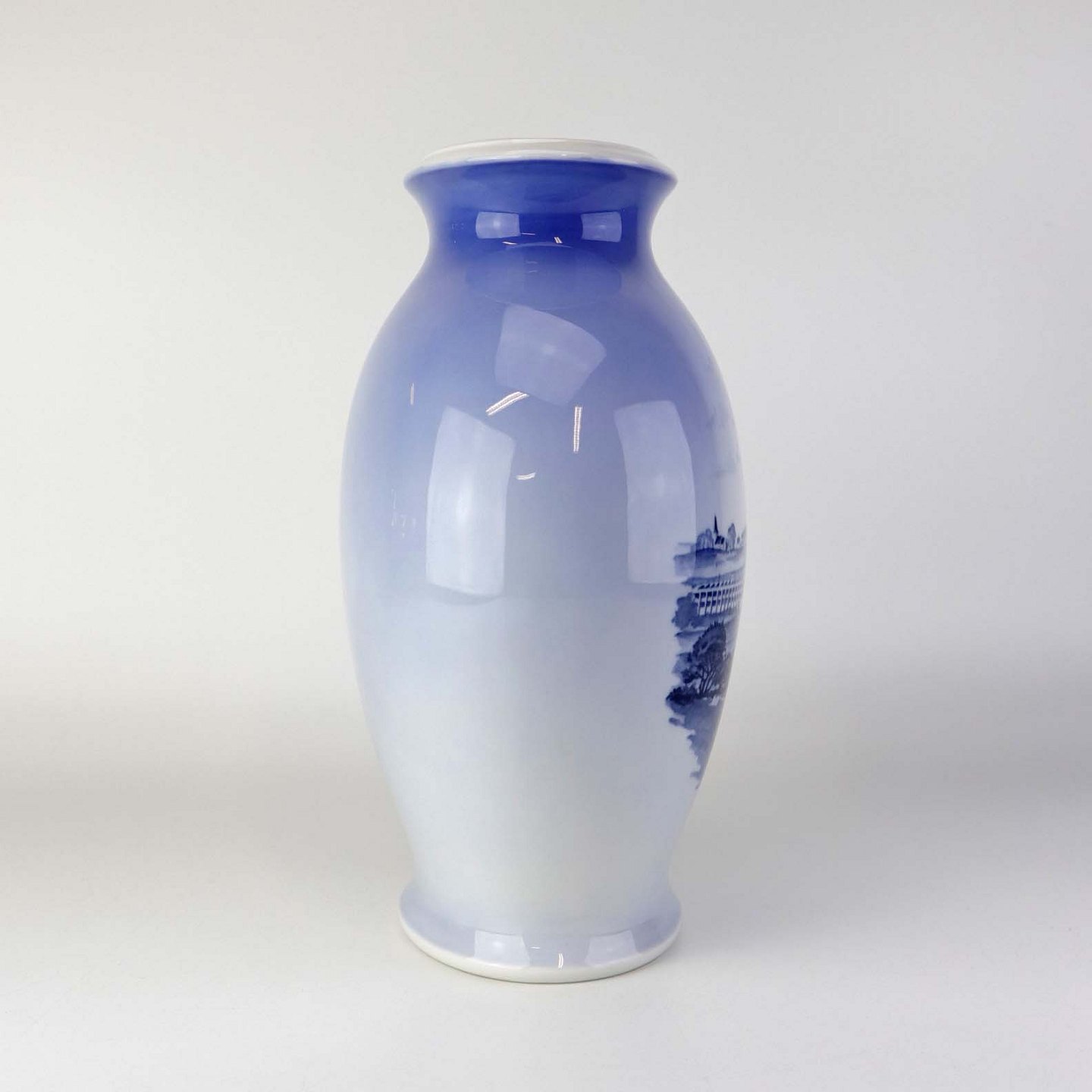 Oval jubilæumsvase i kongelig porcelæn med motiv af Danfoss fabriksbygninger. Nr. 3088Producent Royal Copenhagen