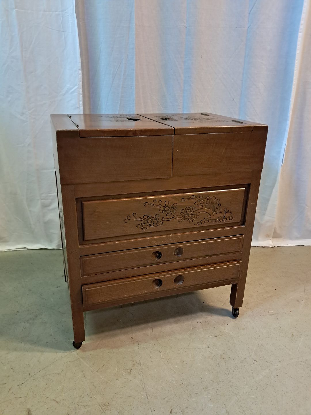 Asiatisk opbevaringsmøbel i fineret mahogni, fra 1980erne.