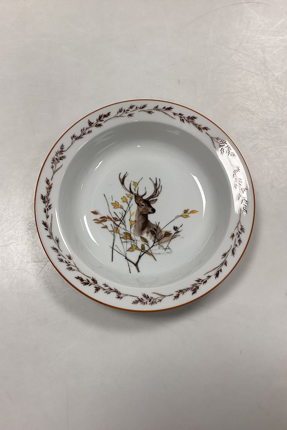 Mads Stage Jagtstellet Dyb Tallerken. Producent: Seltmann Weiden. Motiv: Kronhjort.Måler 20,5 cm / 8,07 in.