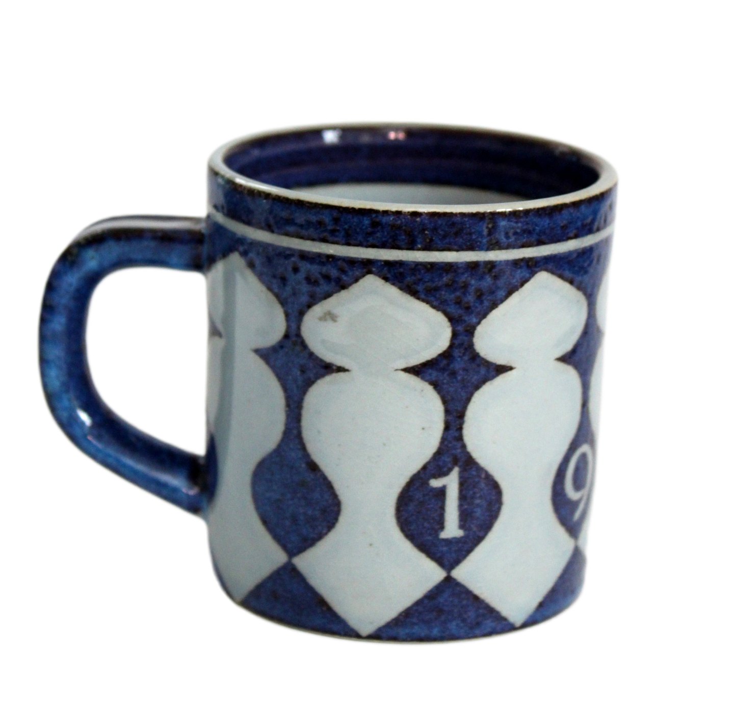 Aluminia, Lille årskrus i kunstfajance. Designer Nils Thorson. Dette er det første årskrus. Nr. 3495. Årskrus er produceret fra perioden 1967 til 2014, fra 1968 er det Royal Copenhagen. Højde 7,5 cm. Diameter 6,8 cm. Lettere overfladekrakelering. Pris: 700 kr. stk. Lager: 1 Udstiller