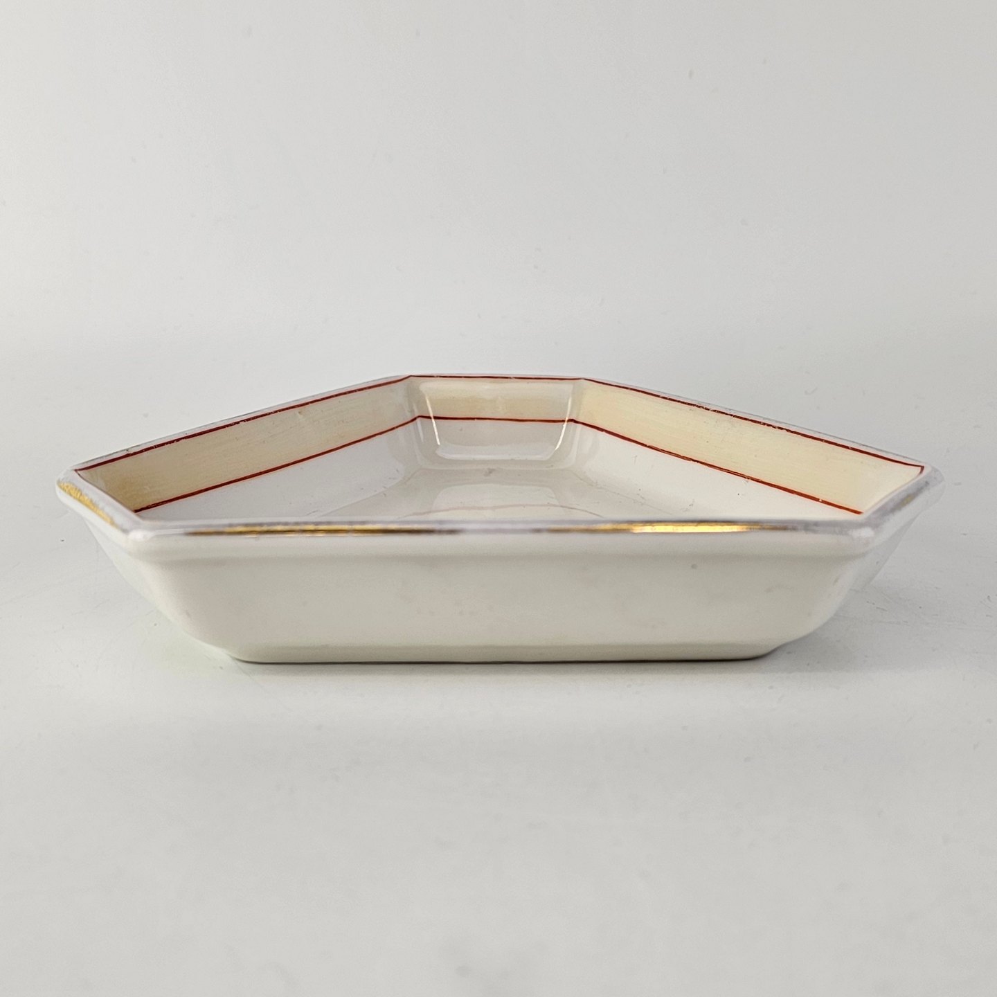 Trekantet fad i kongeligt porcelæn fra stellet Det spanske stel.Nr. 79/313 underflad til salt, peber og sennep.