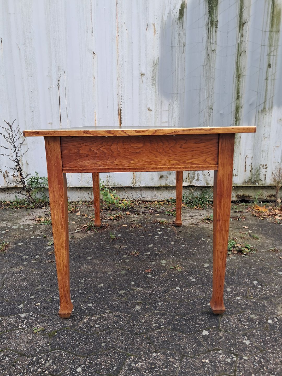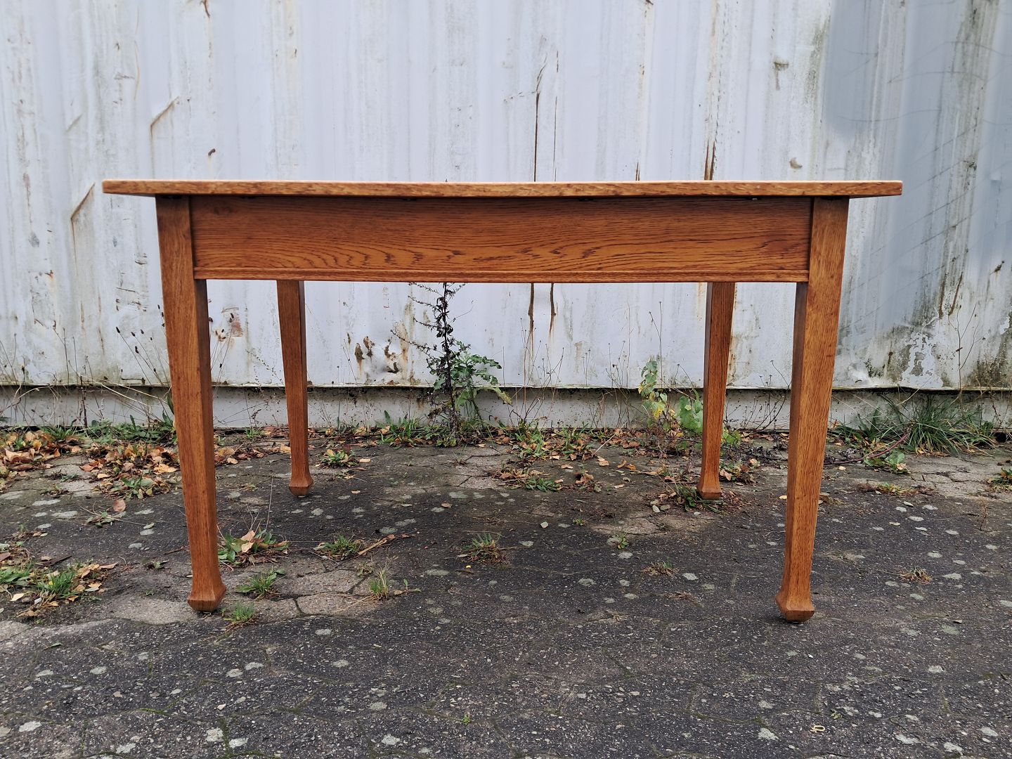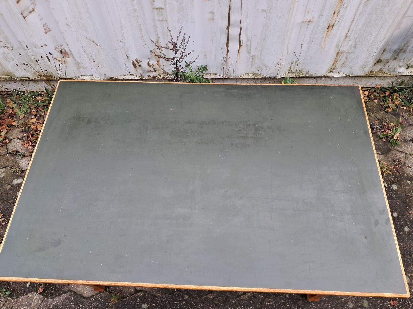 Bord i massivt egetræ med linoleumsplade, fra 1930erne.Det har brugsspor.