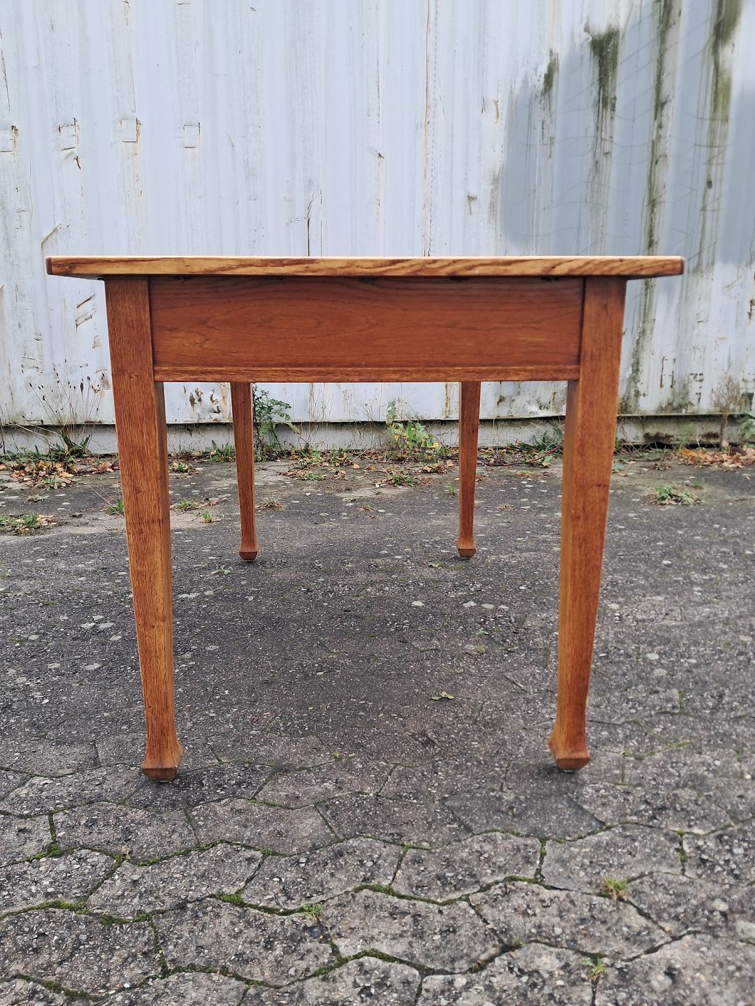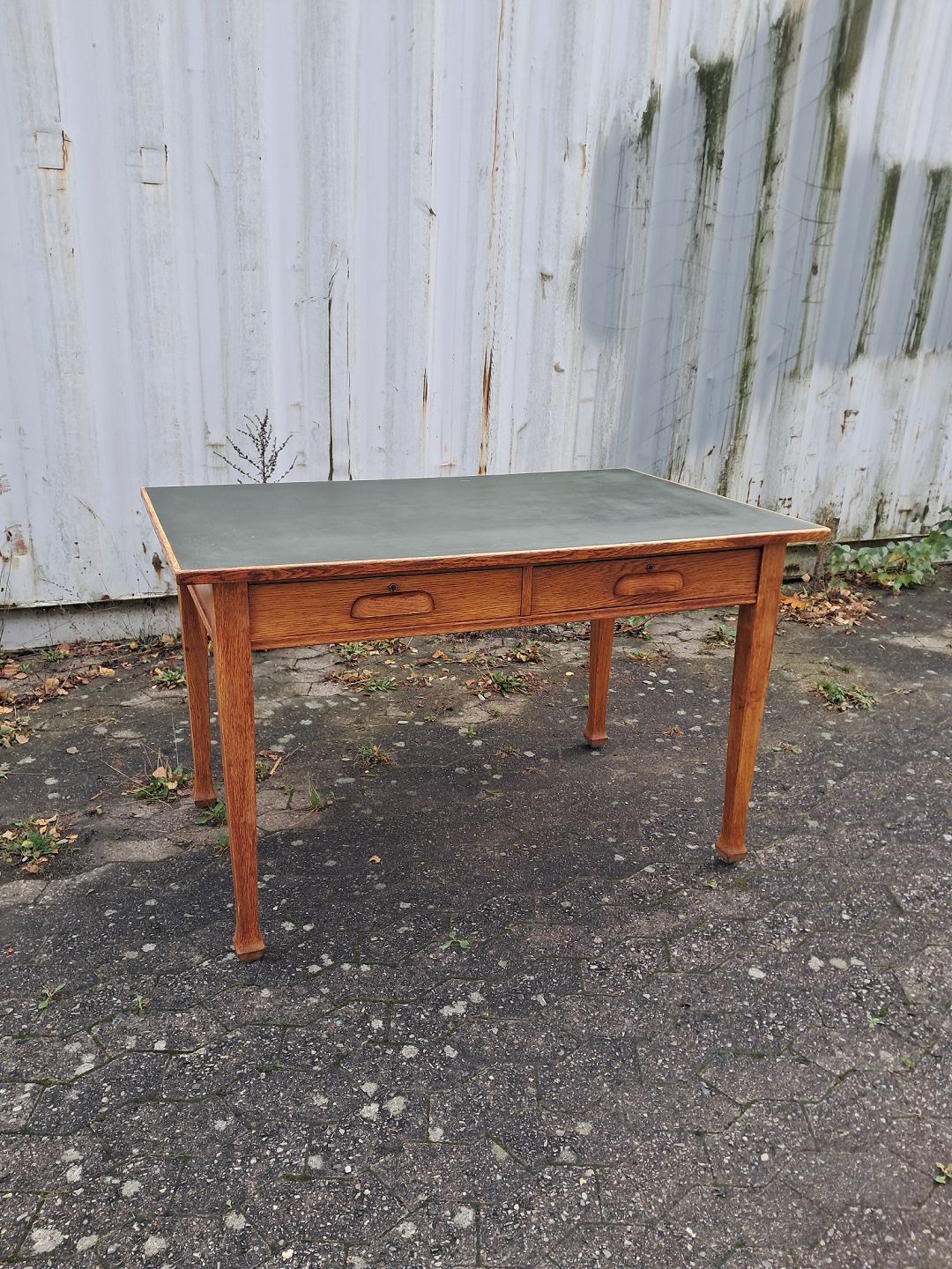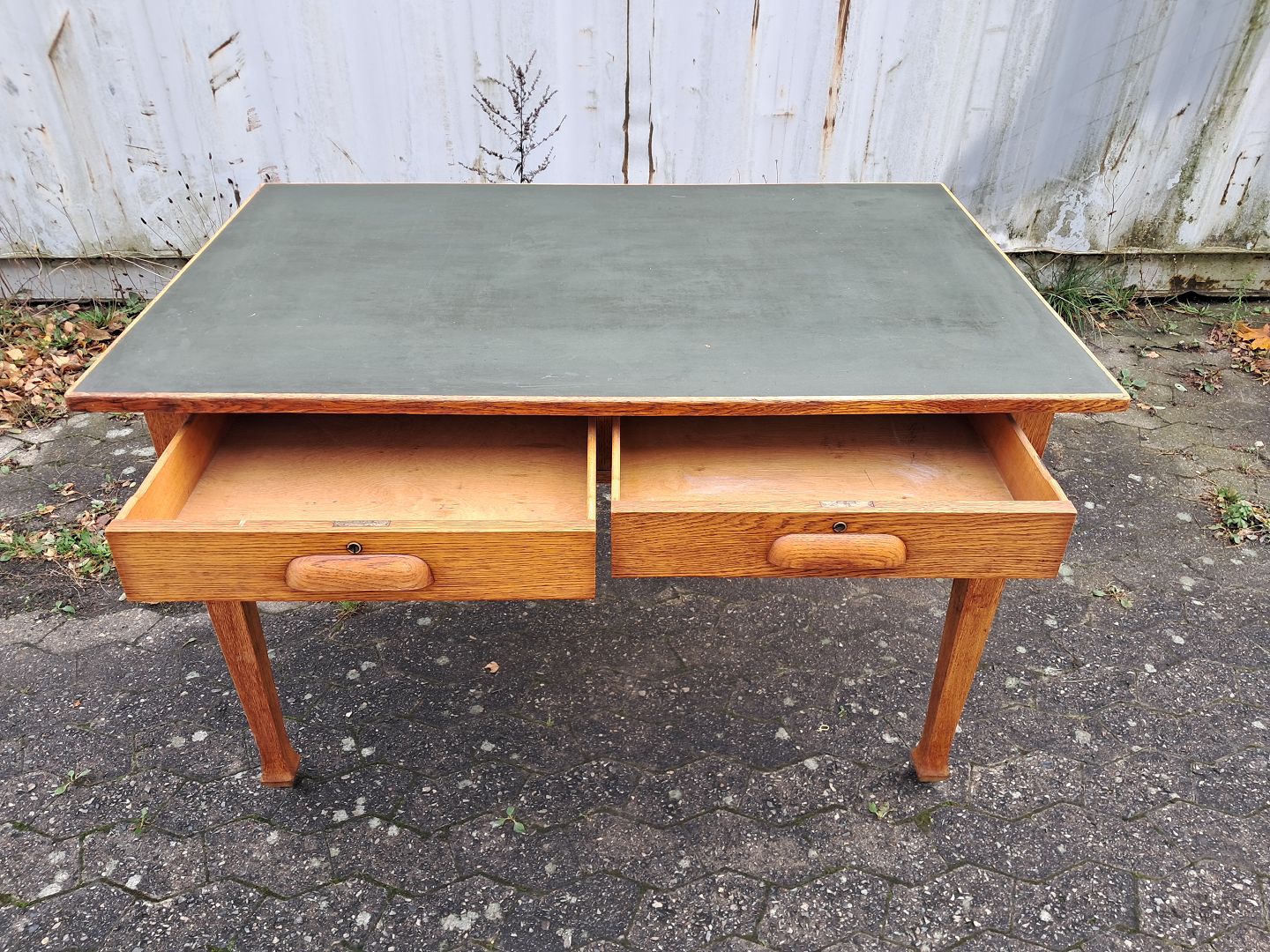 Bord i massivt egetræ med linoleumsplade, fra 1930erne.Det har brugsspor.