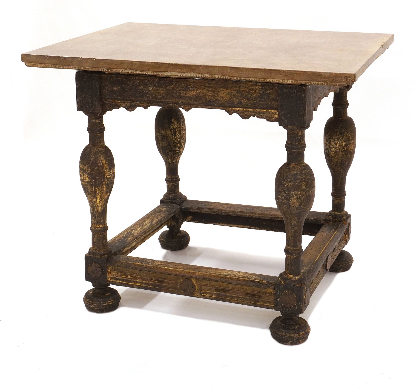 Sort dekoreret barokt bord med grålig stenpladeDanmark ca. år 1750