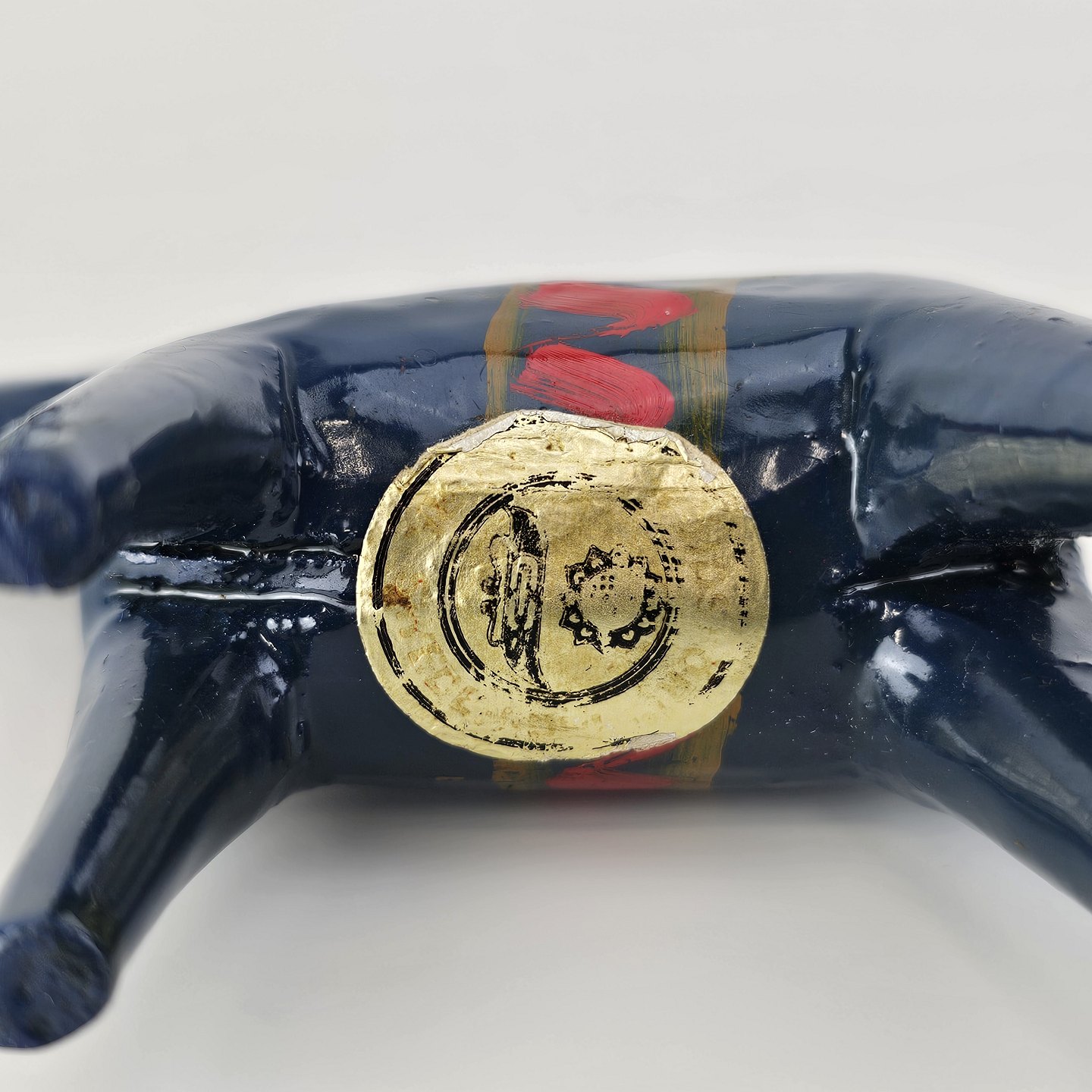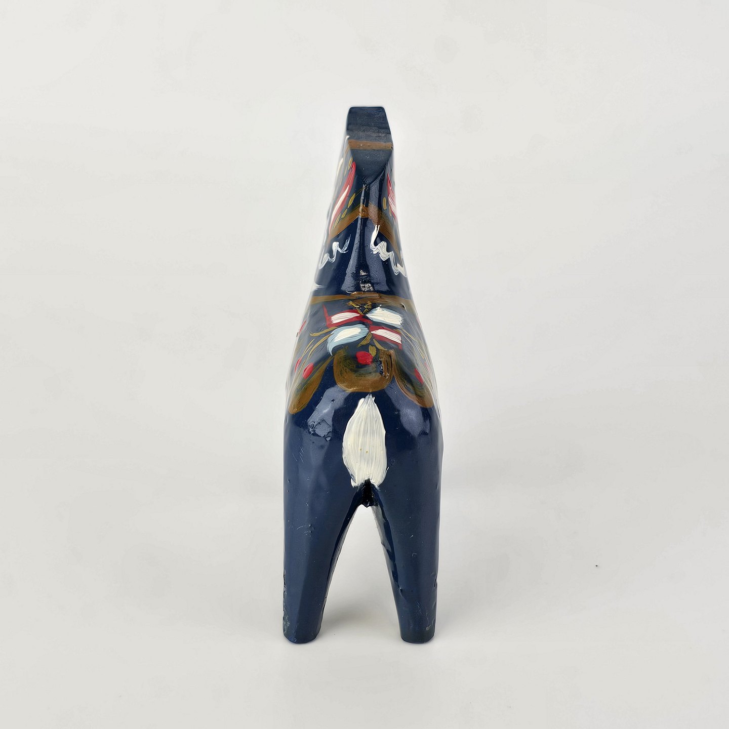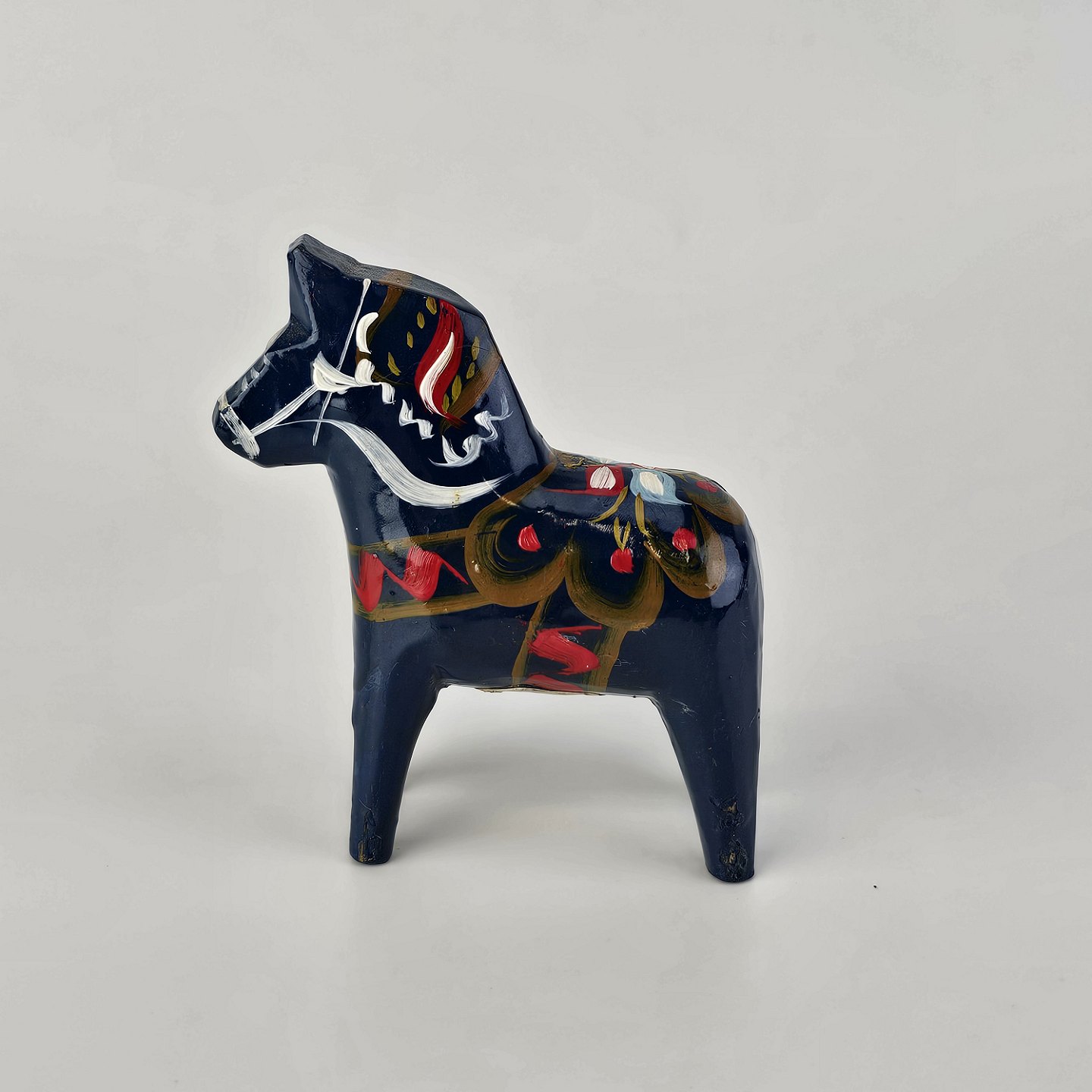Figur af blå Dalarhest i malet og lakeret træFremstillet i Sverige