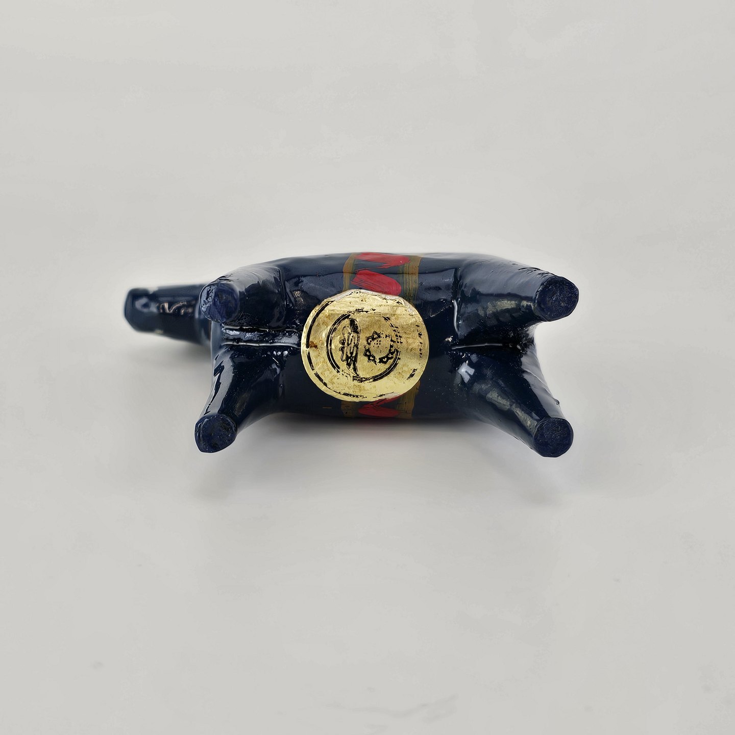 Har et mærkat under bunden som er delvist skrabet af