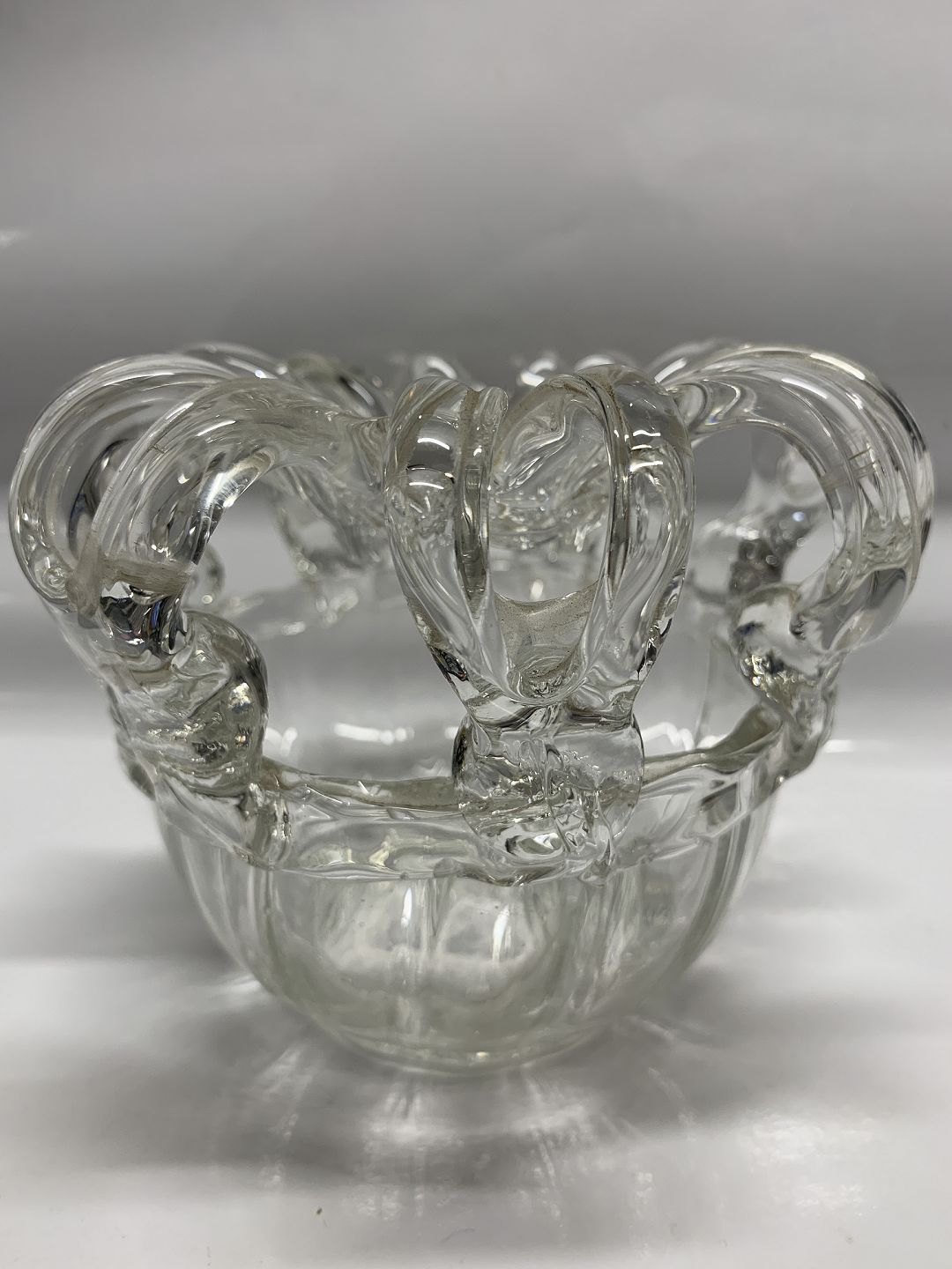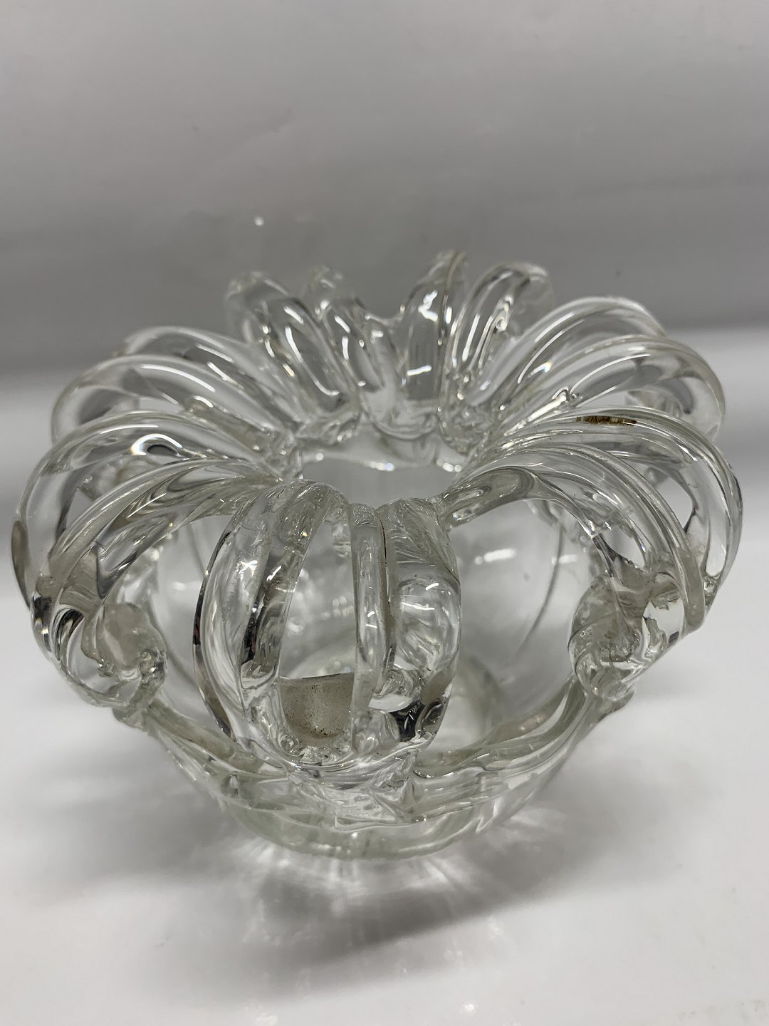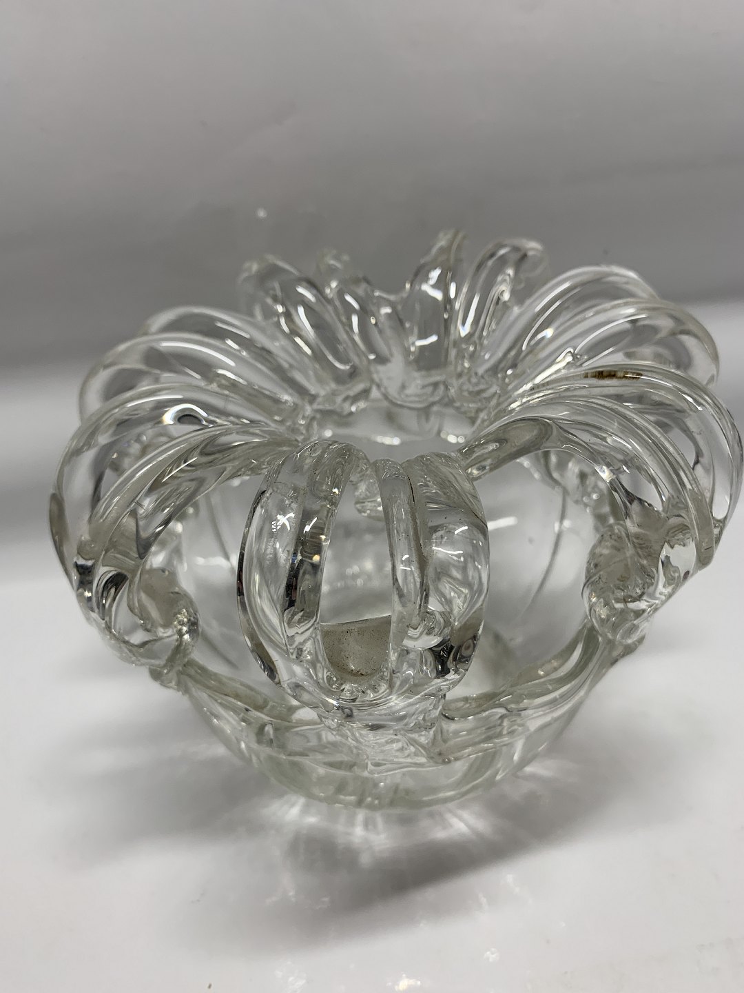 Stor Brudekrone vase i klar glas.År. ca. 1900, Danmark. Optisk drevet. Med sårrand i bunden.