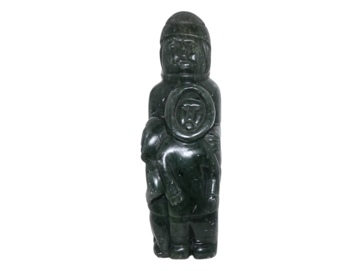 Grønlandica, stor figur af mand med to børn udført af Lorentz Josefsen i 1978 og i tungt sten.Højde 29,0 cm.