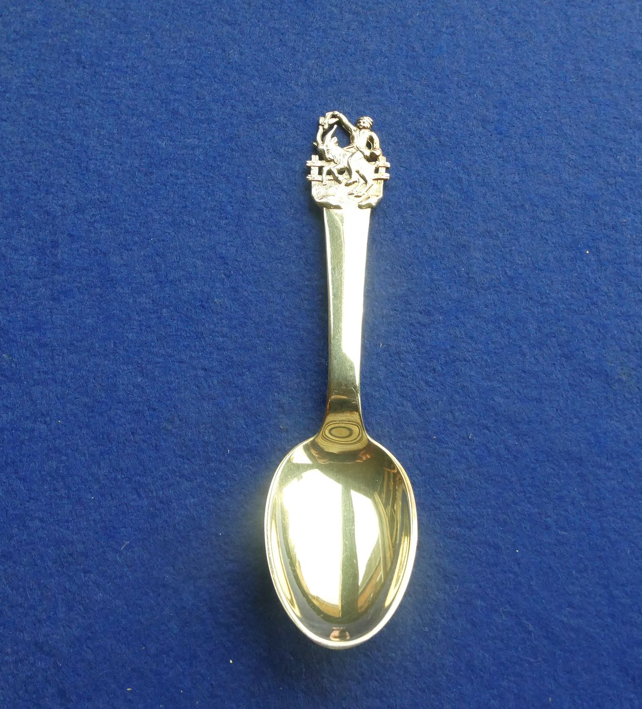 H.C. Andersen barnebestik i tretårnet forgyldt sølv med Klods Hans.H.C. Andersen eventyr børnebestik.