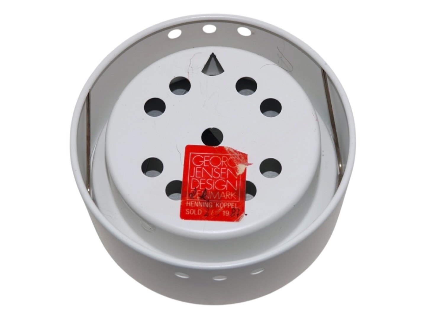 Georg Jensen Termometer i hvid kasse med sort skive.