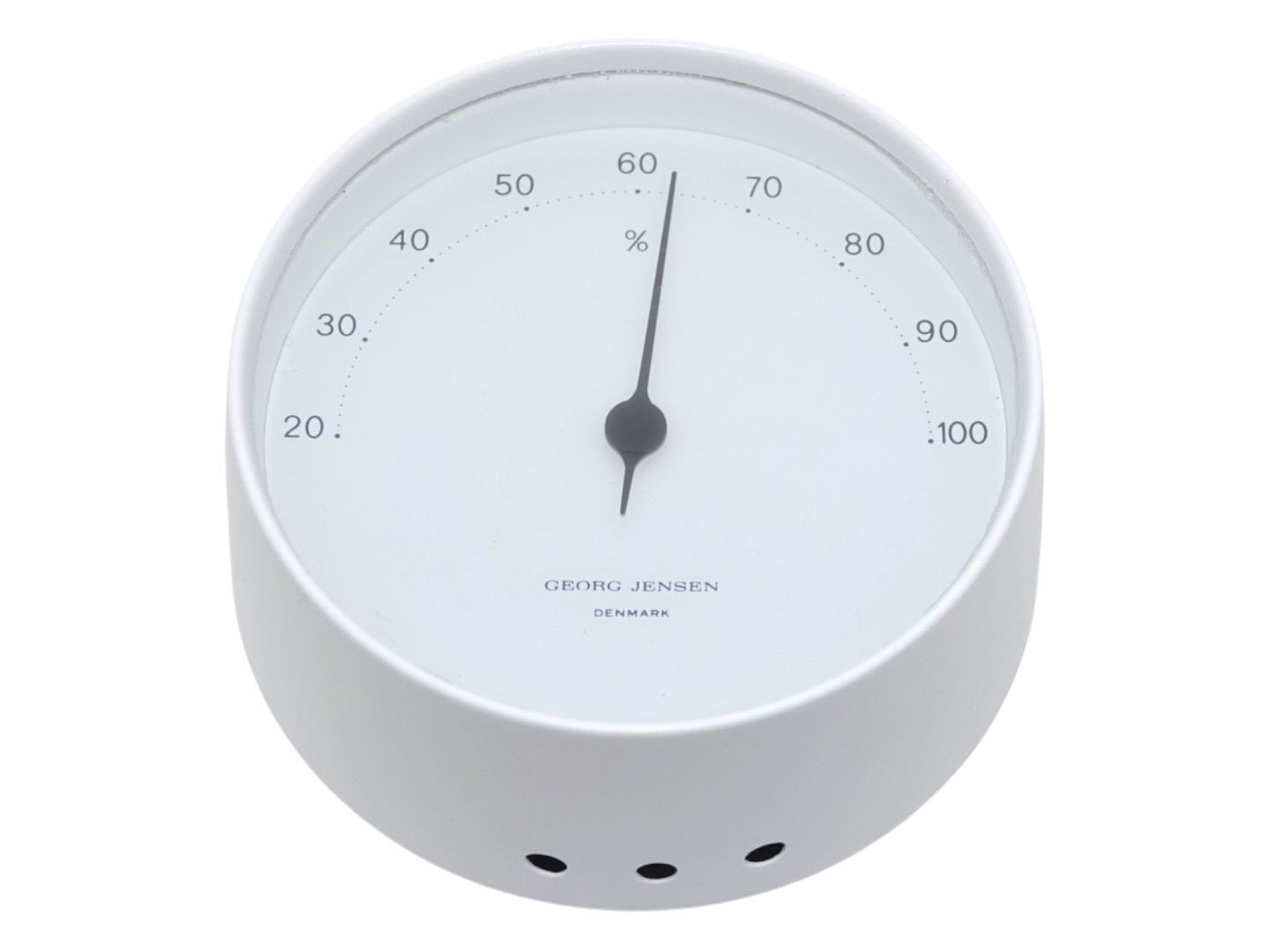 Georg Jensen Hygrometer i hvid kasse med hvid skive.