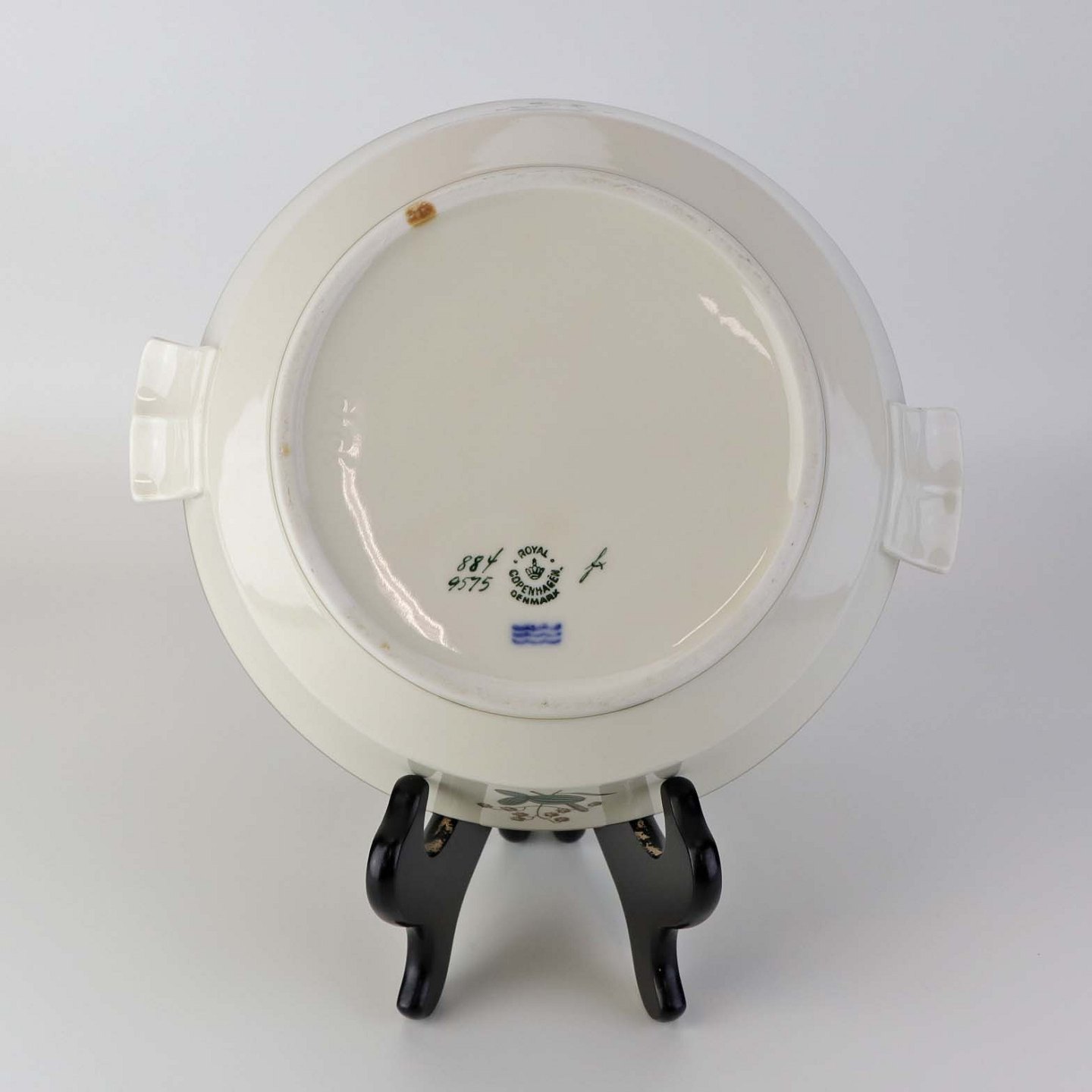 Serveringsskål med hanke i kongelig porcelæn fra stellet Hjertegræs. Nr. 884/9575Formgiver Thorkild Olsen