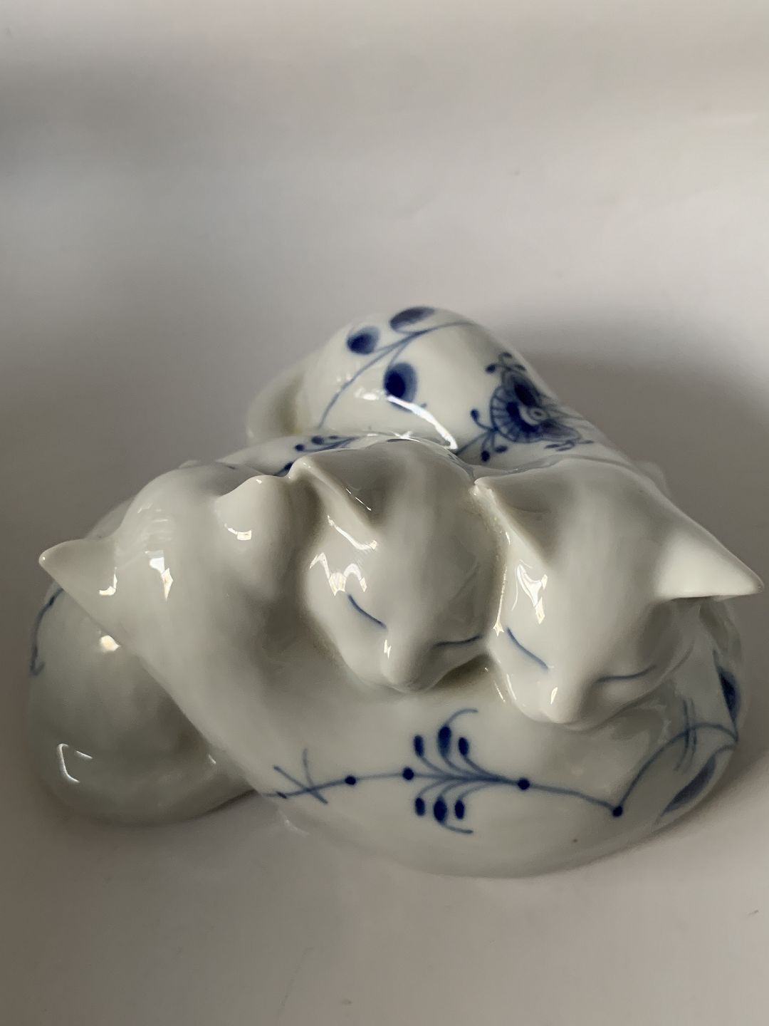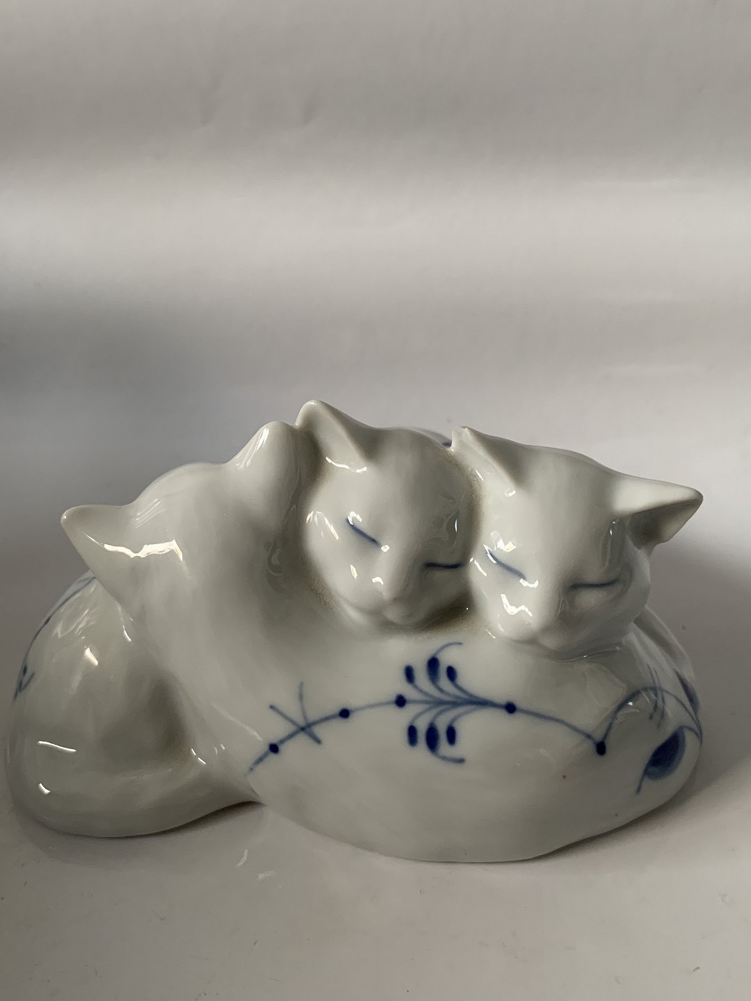 Royal Copenhagen Musselmalet Riflet, figur af 3 katte.1. sortering.