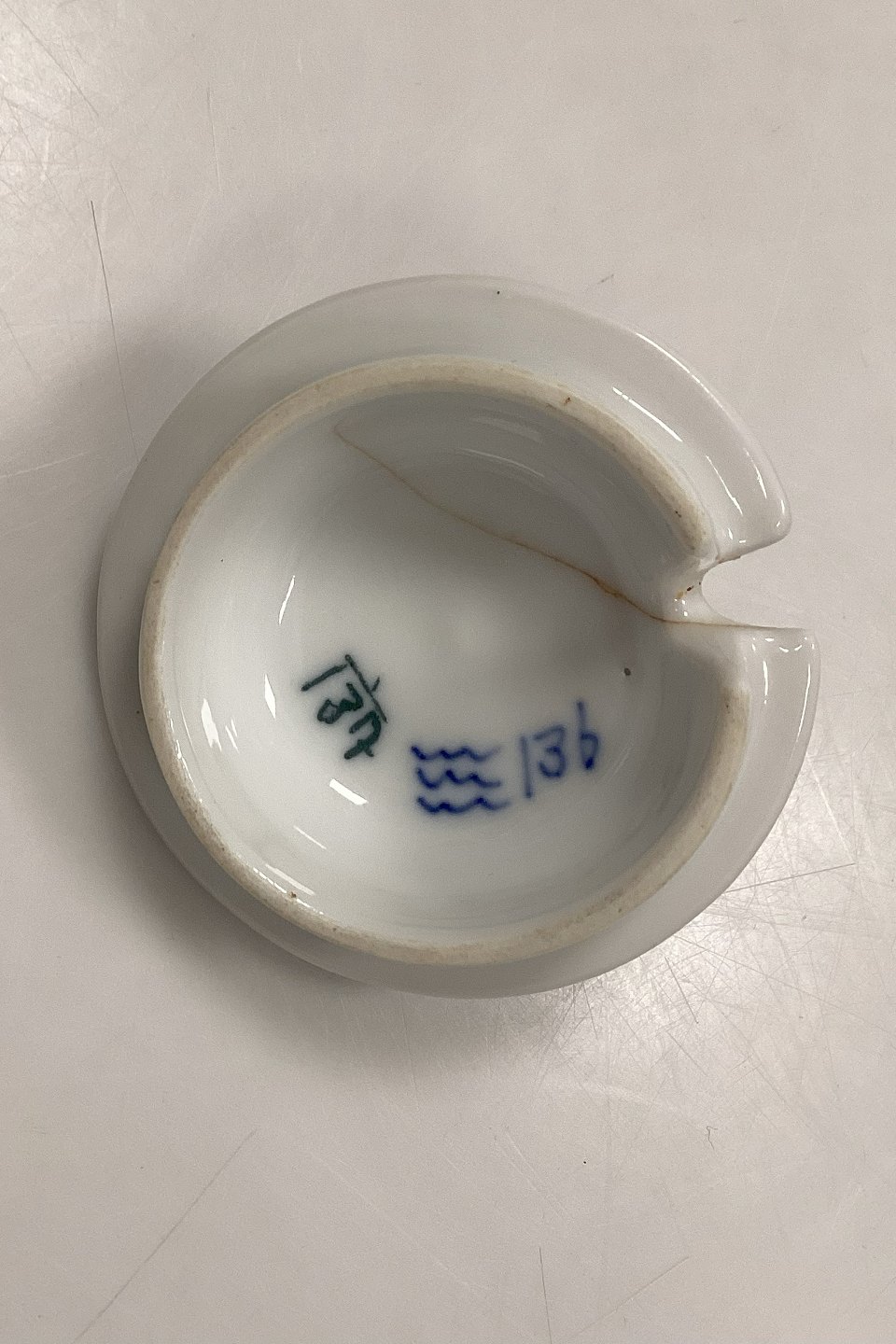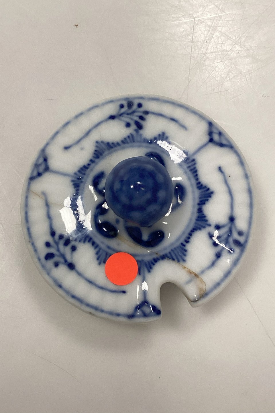 Låget har en revne, der viser tegn på reparation