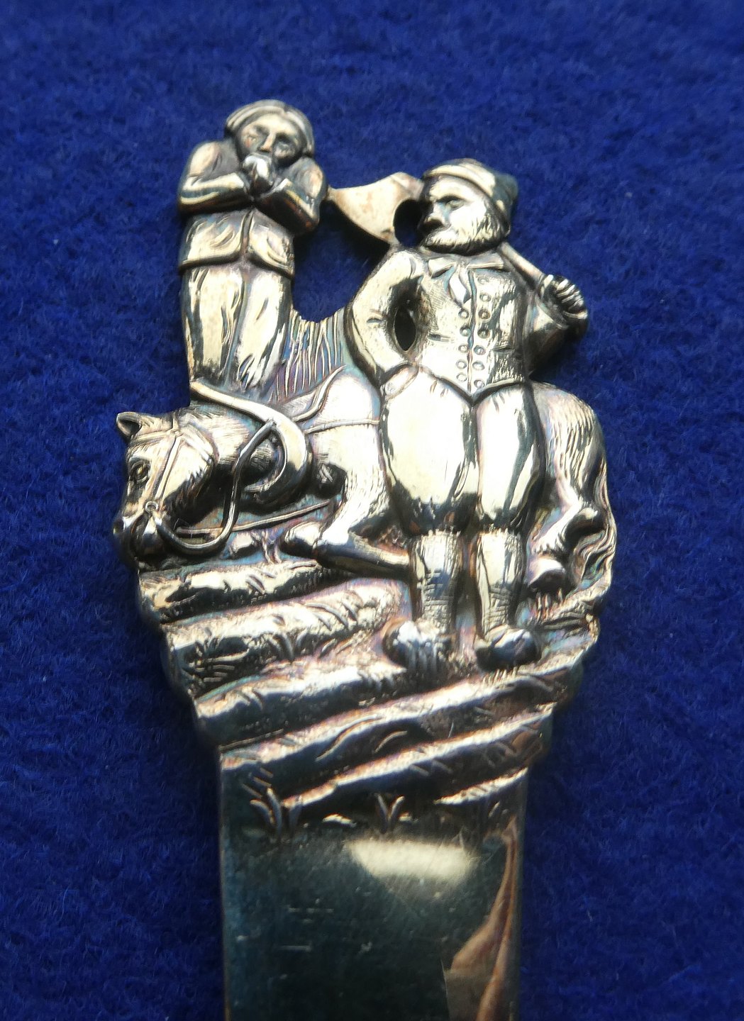 H.C. Andersen barnebestik i forgyldt tretårnet sølv med Lille Klaus og Store Klaus.H.C. Andersen eventyr børnebestik.