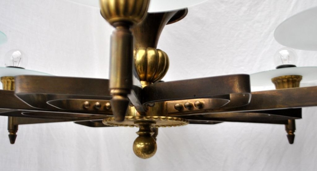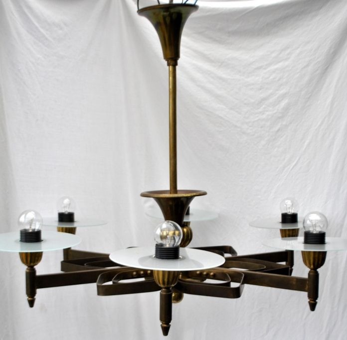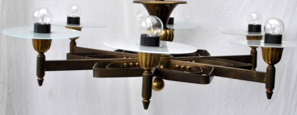 Dansk funkis loftslampe i bronze, ca. 1930. Med 6 lysarme. H.: 60 cm. Dia.: 80 cm.Perfekt stand!