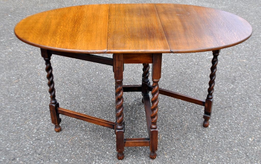 Engelsk gateleg bord i ege træ, 19. årh. Med drejede ben. H.: 74 cm. B.: 75,5 cm. D: 30 cm. Udslået: 133 cm.