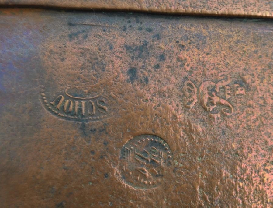 Kobber grue kedel, 1848 - 1863. Danmark. Flot stemplet. Med to hanke. H.: 37 cm. Dia.: 53 cm.Virkelig flot eksemplar.