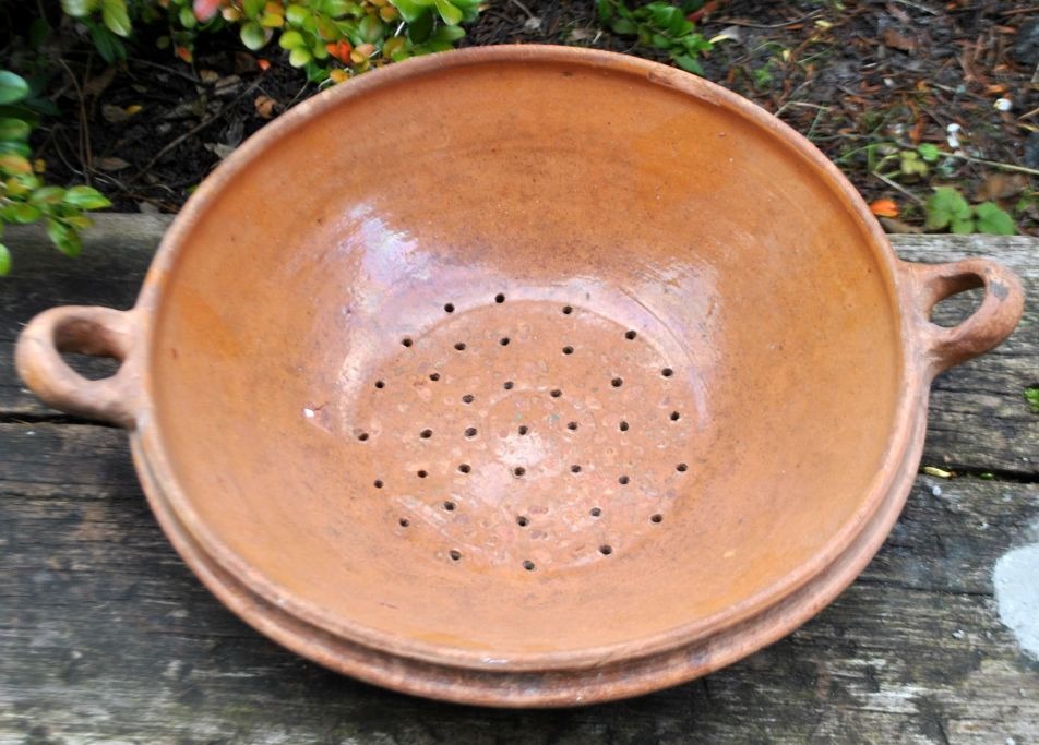 Dansk lertøjs dørslag, 19. årh. H: 8 cm. Dia.: 29 cm.Emne nummer: 28335