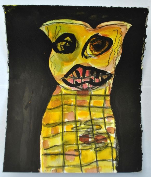 Kühl, Lena (1950 -) Danmark: Komposition i gult og sort, 2023. Akvarel og tusch på papir. Signeret: LK - 2023. H: 31 cm. B: 25 cm.Uindrammet.