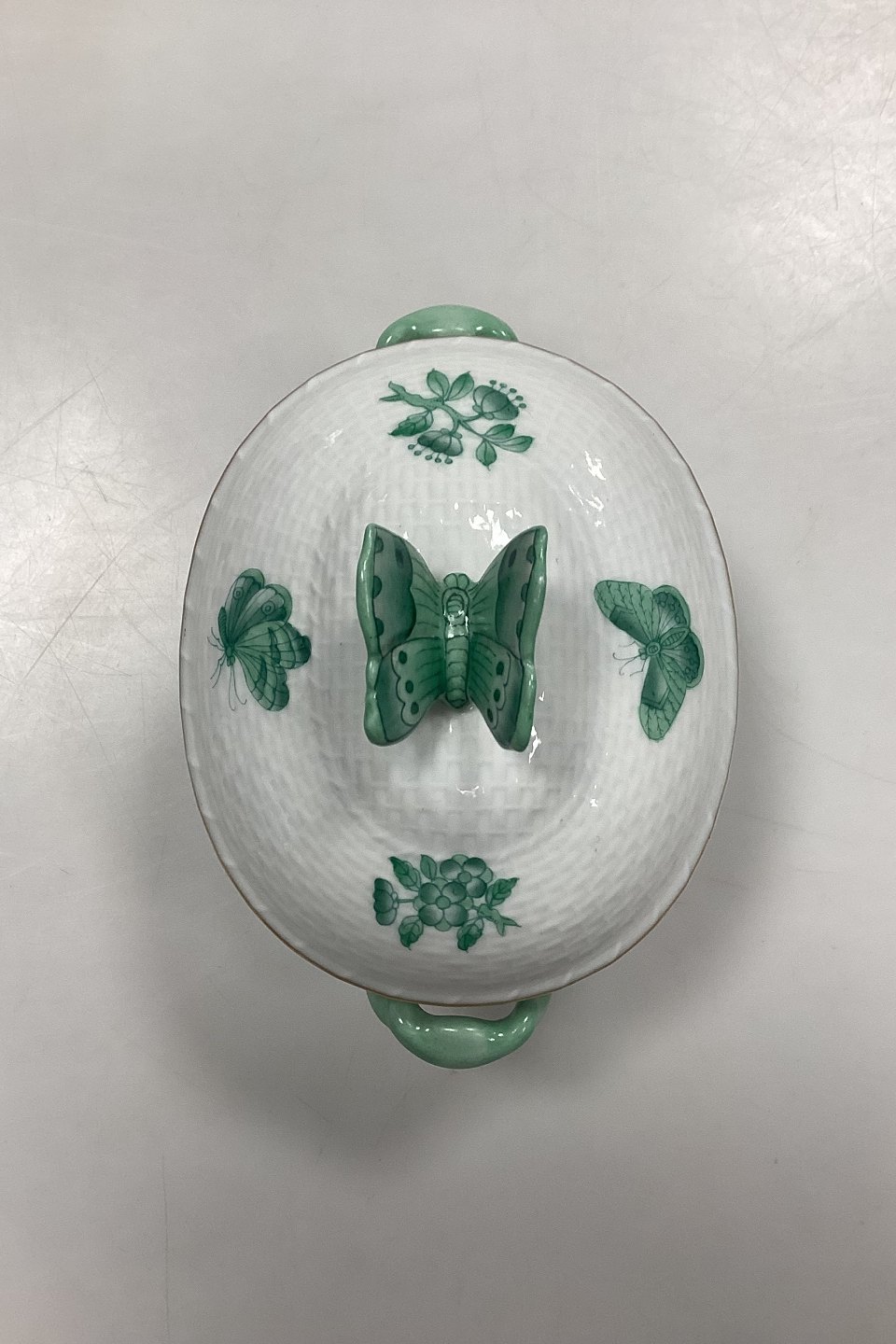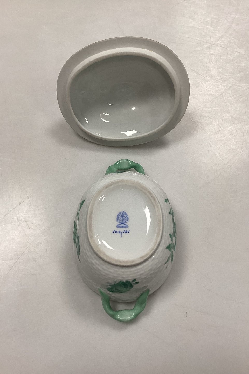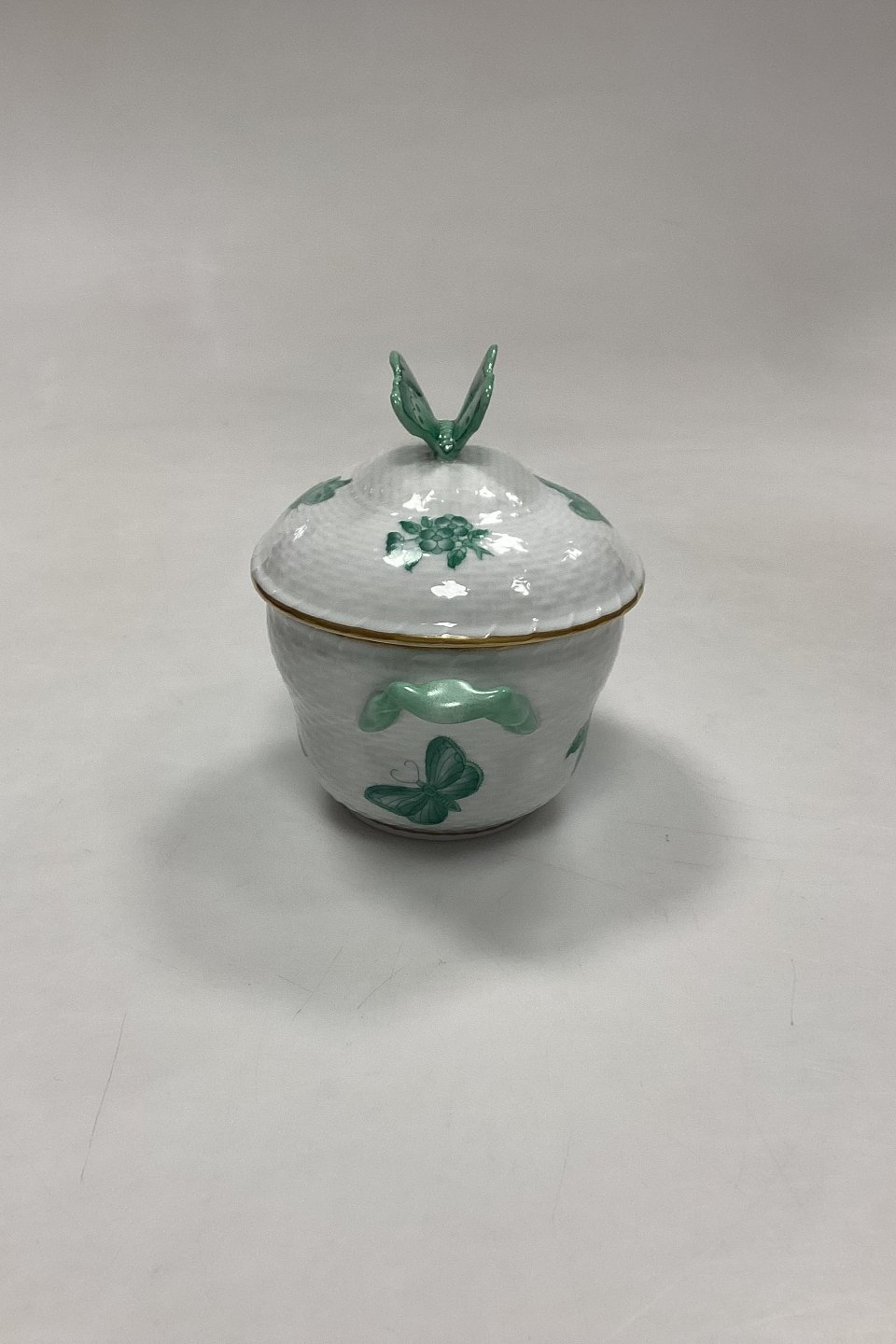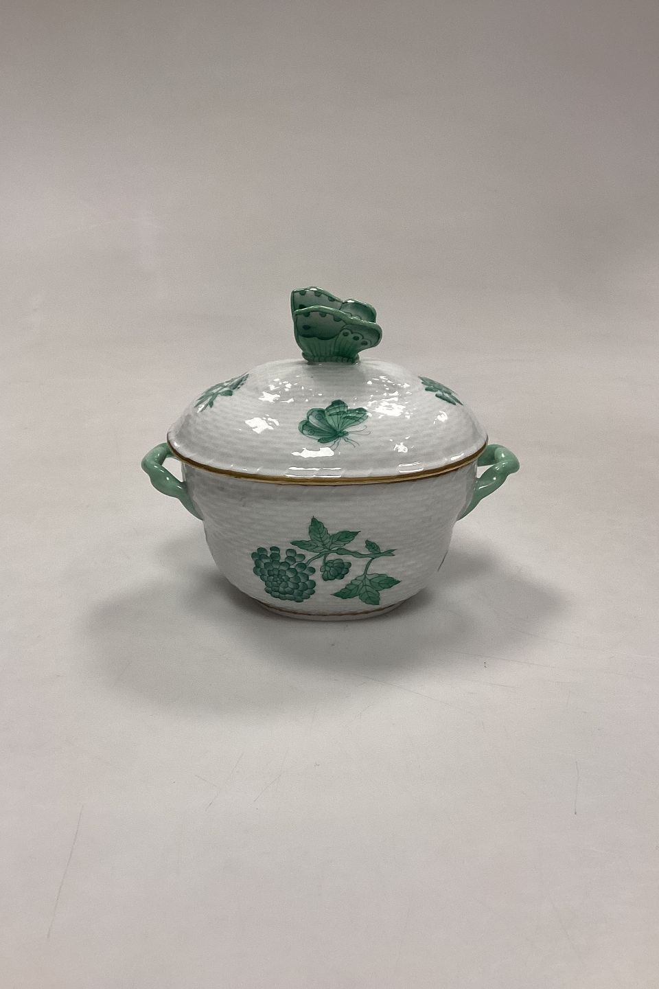 Herend Chinese Bouquet Grøn Lågskål No. 6018/VAV. Måler 11 cm med sommerfugl x 13,5 cm med hanke.Lager: 1