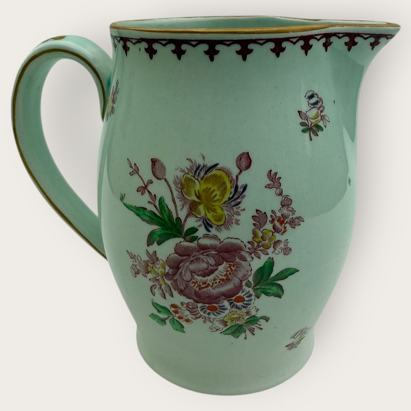 Adams Calyx Ware, Chelsea Sprays red, Pitcher, 14.5cm high, width 17cm, *With small notch under the bottom (see photo) otherwise good condition *Stock: 1