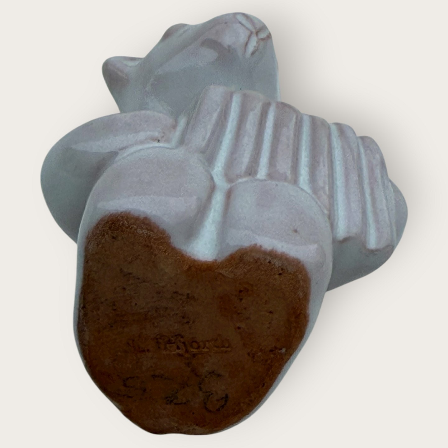 Bornholmsk keramik, Hjorth, Bjørne orkester, Harmonika, bjørn med hvid glasur, ca. 6x5cm *Pæn stand*Lager: 1
