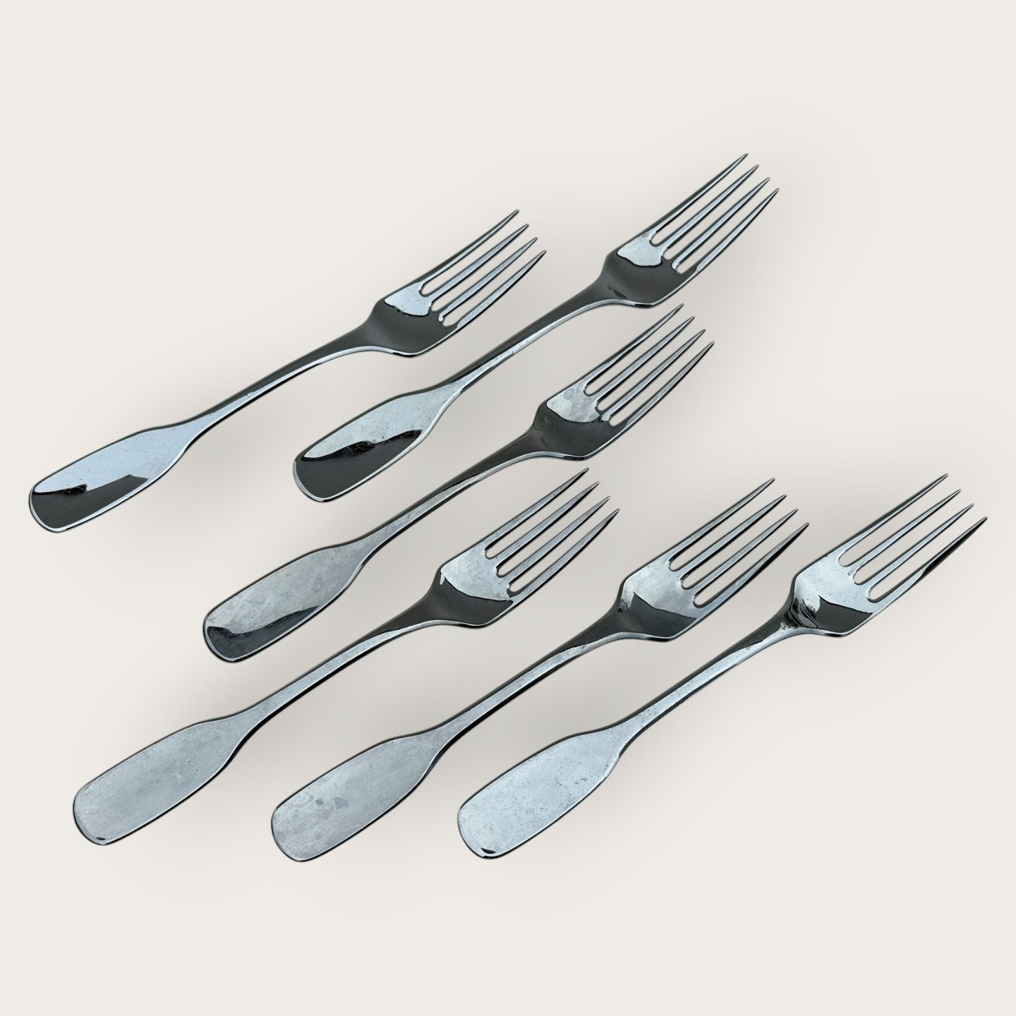 Hans Hansen sølvsmed, 6 gafler i rustfrit stål, 18cm lange *pæn brugt stand*Lager: 1