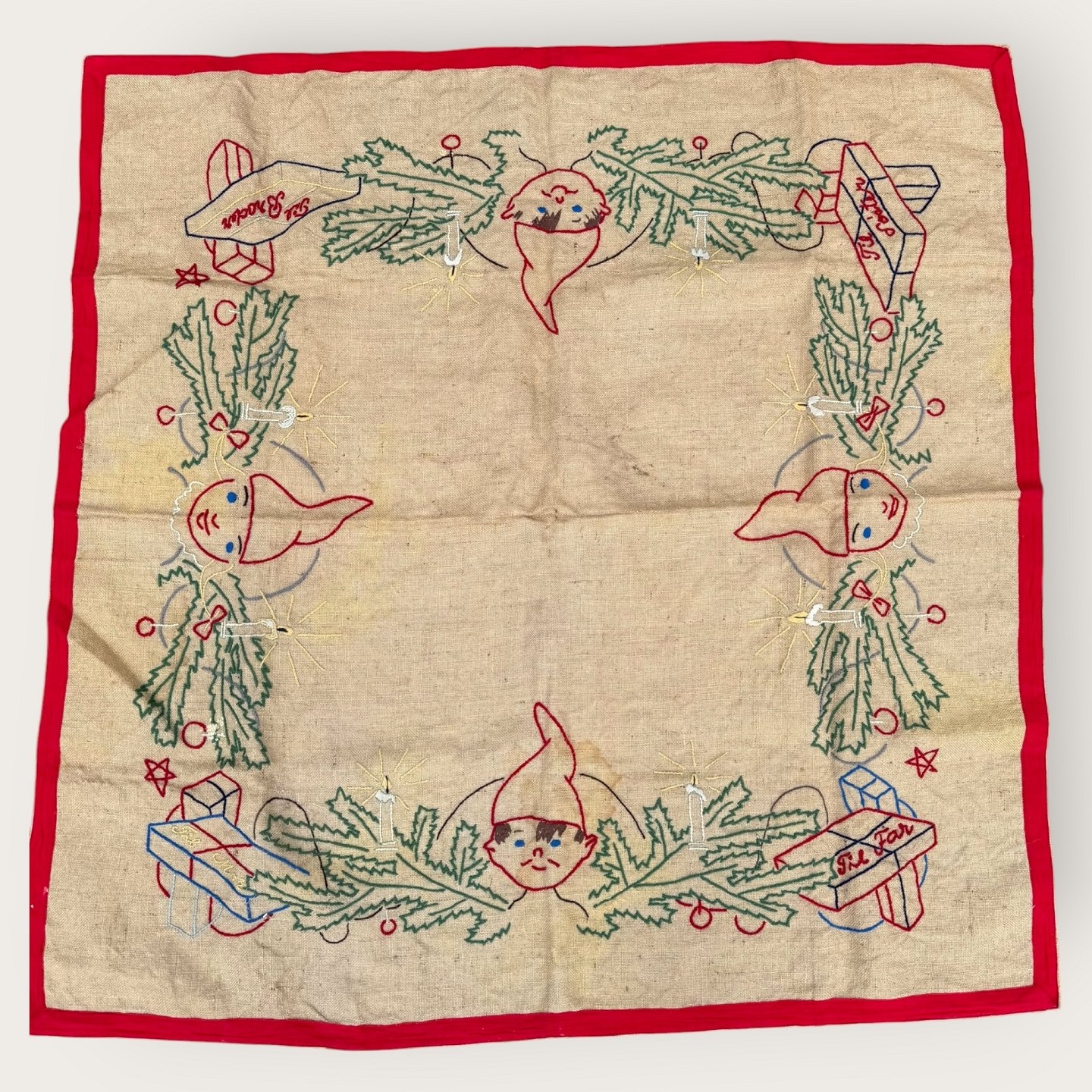 Juletræstæppe, Broderi med julemotiv, 120cm / 120cm *Pænt patineret stand*Lager: 1
