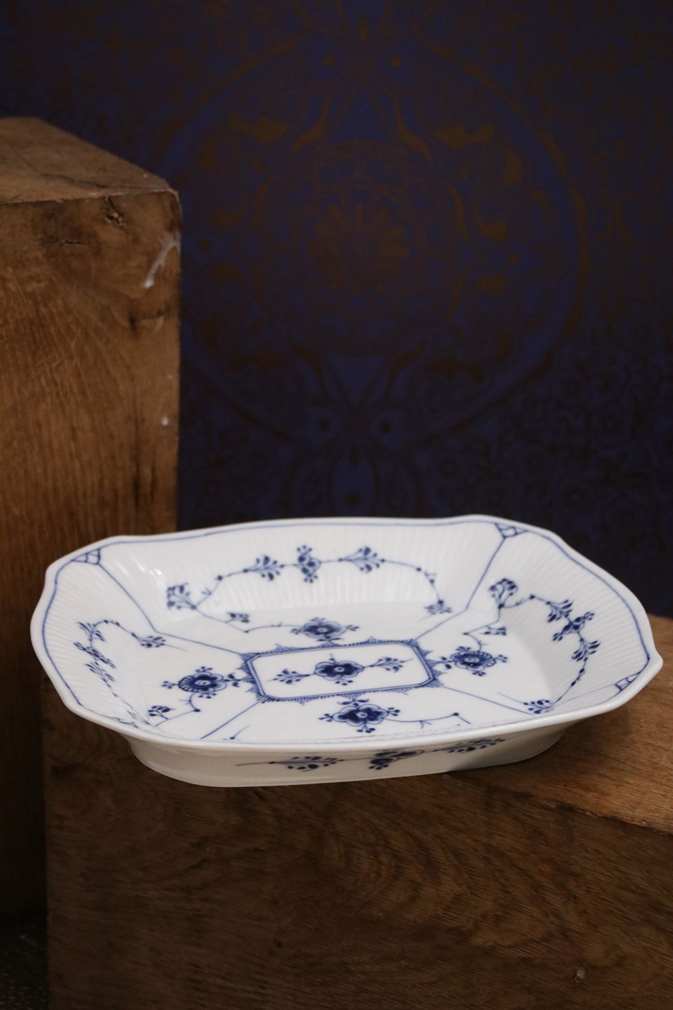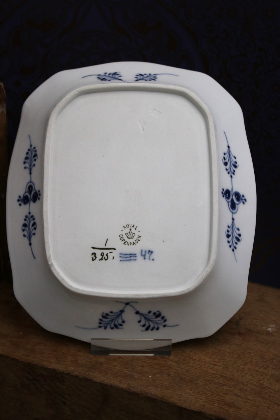 Antik , Musselmalet Riflet brødbakke fra Royal Copenhagen.Dekorationsnummer: 1/325. 1.sort. Fra år 1898-1923.