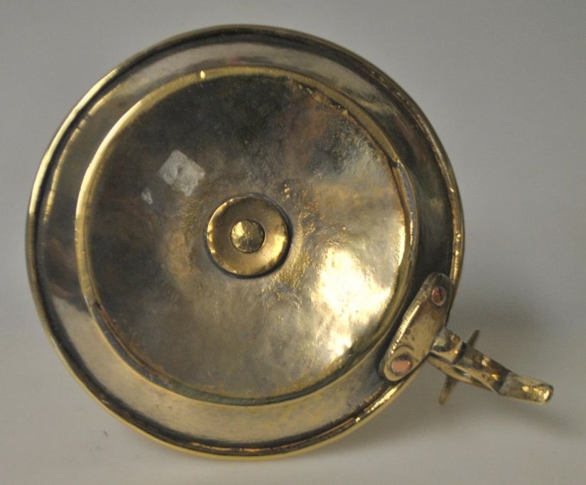 Dansk messing kammerstage, 19. årh. Med håndtag. H.: 11 cm. Dia.: 13 cm.