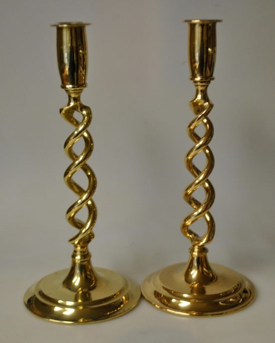 Et par engelske "proptrækker " stager i messing, 19. årh. H.: 26 cm.Fremstår nypudset!