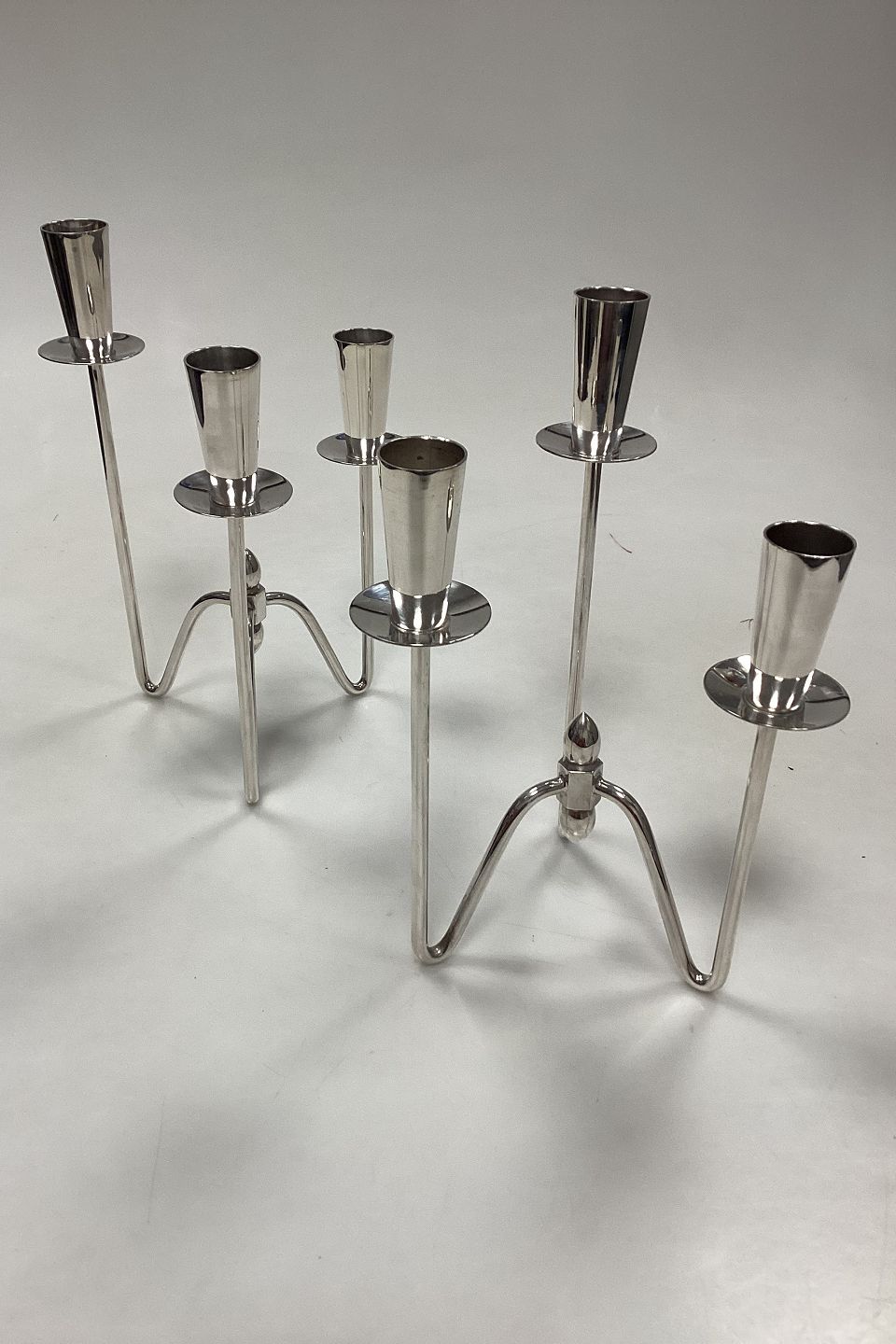 Par trearmede Lysestager i Sølvplet af Johannes BergMåler 20,2 cm / 7,95 inch
