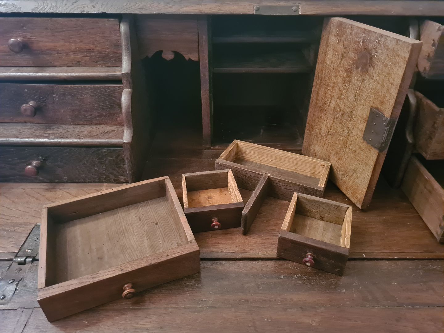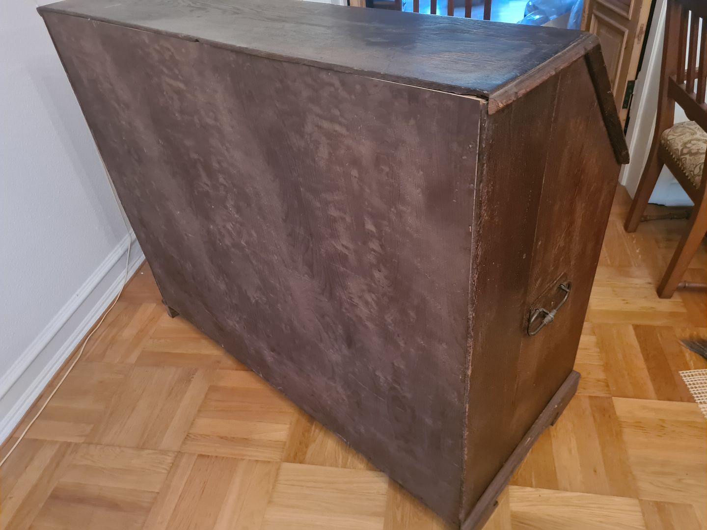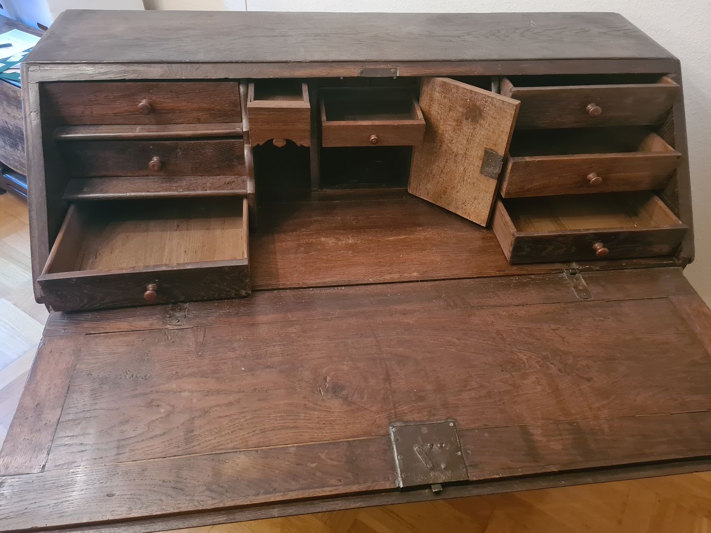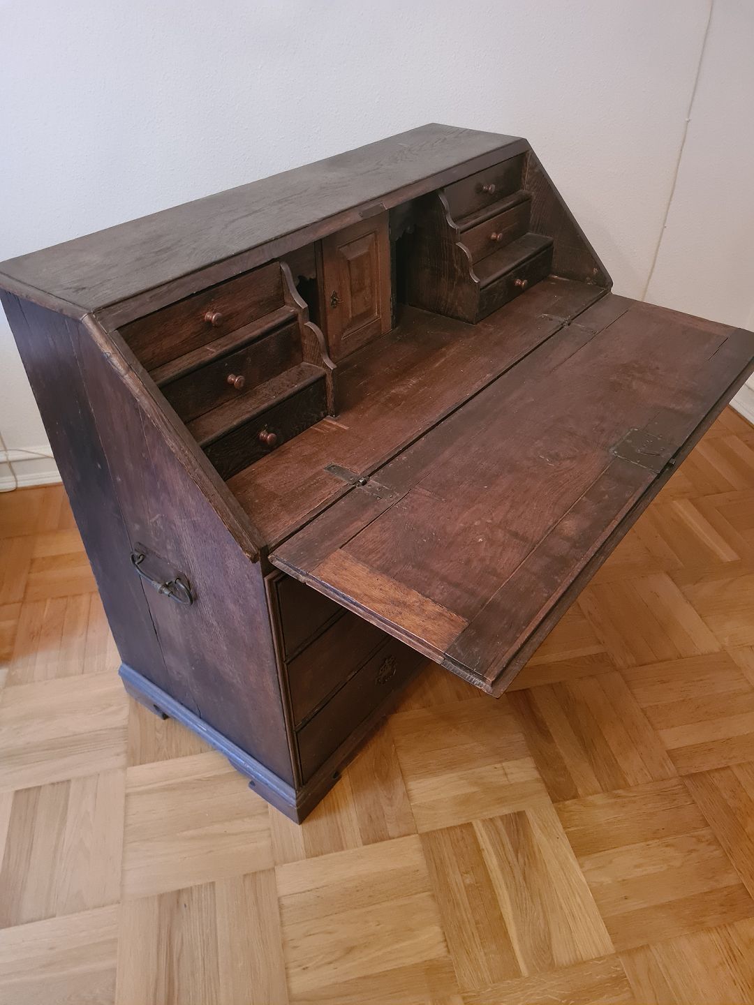 Chatol fra 1800 tallet i eg og med hemmelige skuffer. Fremstår pænt, funktionsdygtigt og velholdt.Højde 109 cm. Bredde 130 cm. Dybde 59 cm.