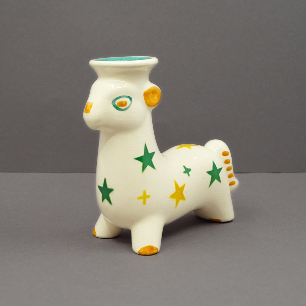 Aluminia; Christmas deer in faience. In orange and green. For one candle. H. 10 cm. L. 11 cm.Aluminia faience Denmark.