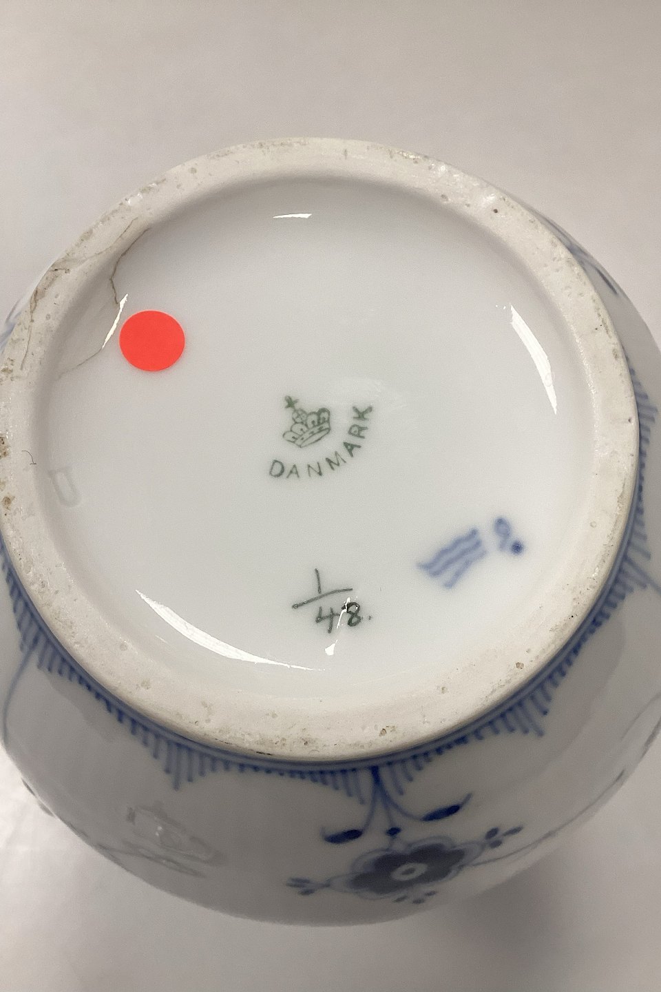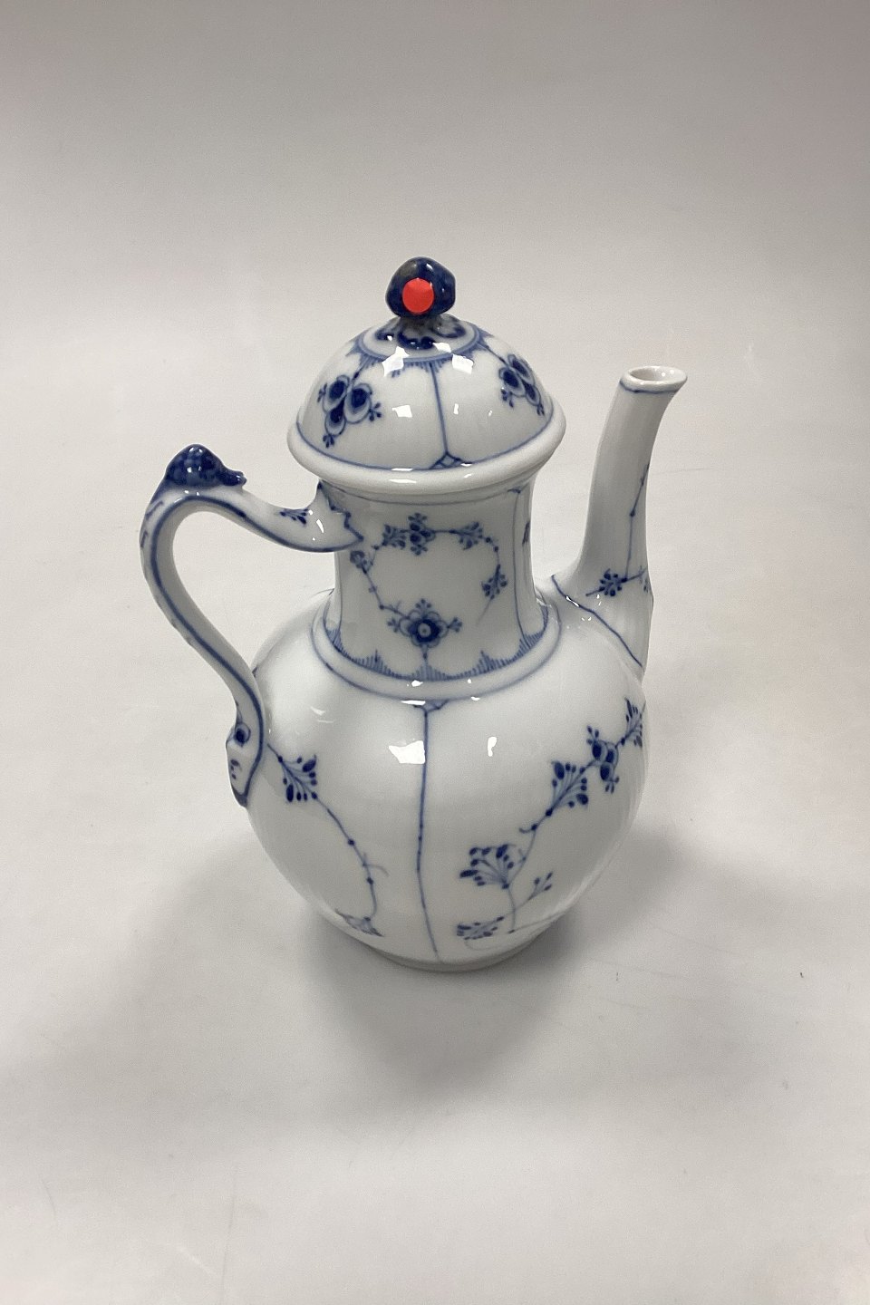Kgl. Porcelæn Musselmalet Riflet Stor Kaffekande No. 481 Sortering. Har en nedslibning på toppen af låget. Har en reparation i låget (skruet sammen). Har en hårrevne i bunden af kanden