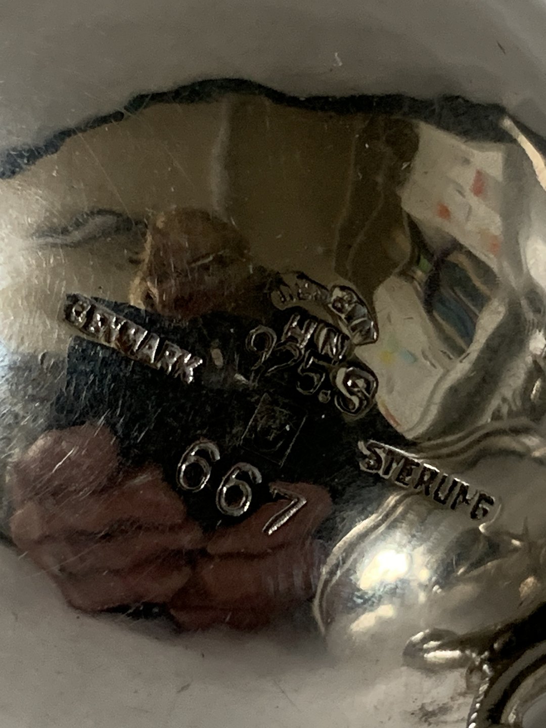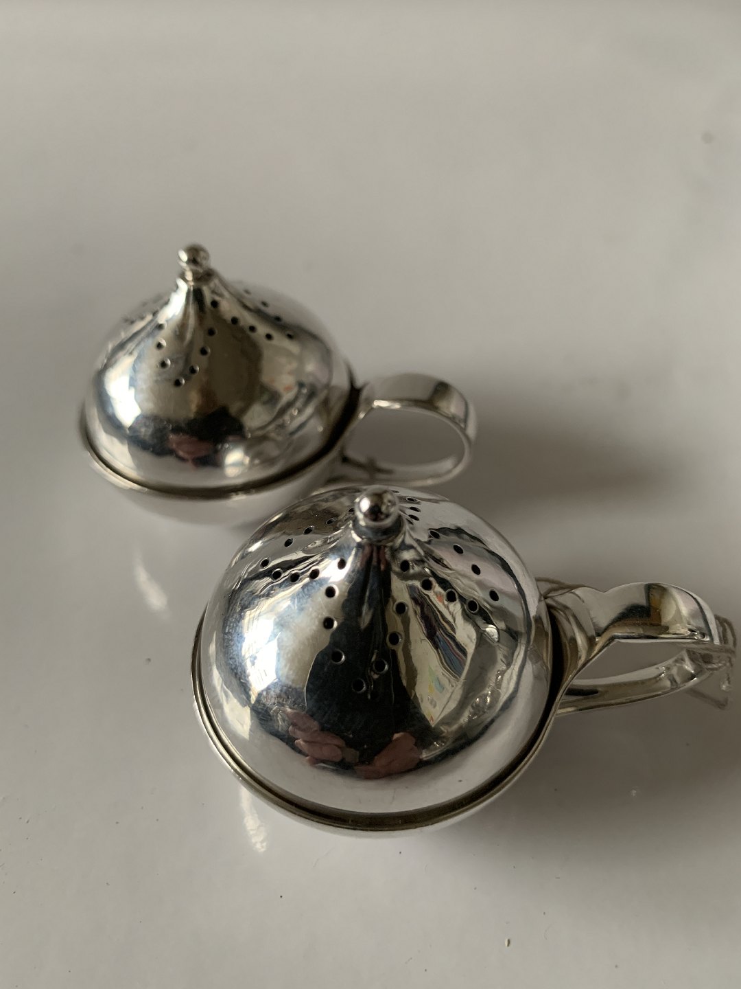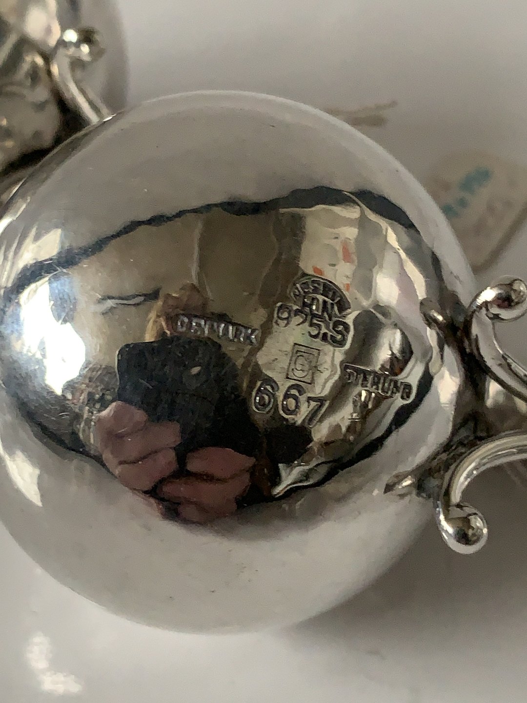 Georg Jensen. Salt- og peberbøsse i sterlingsølv 667.Tegnet af Harald Nielsen (1892-1977)