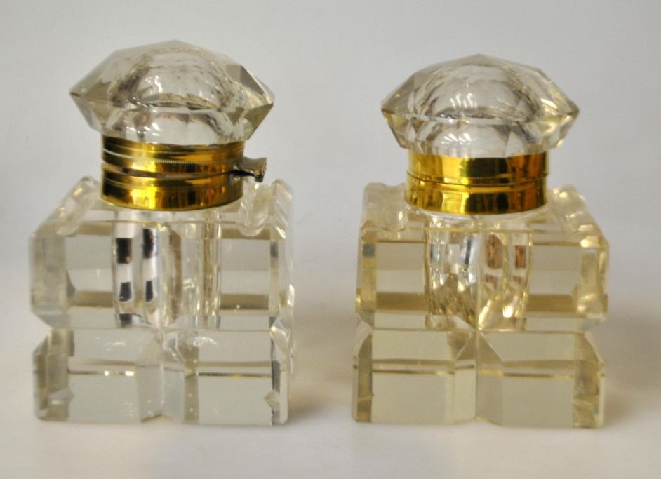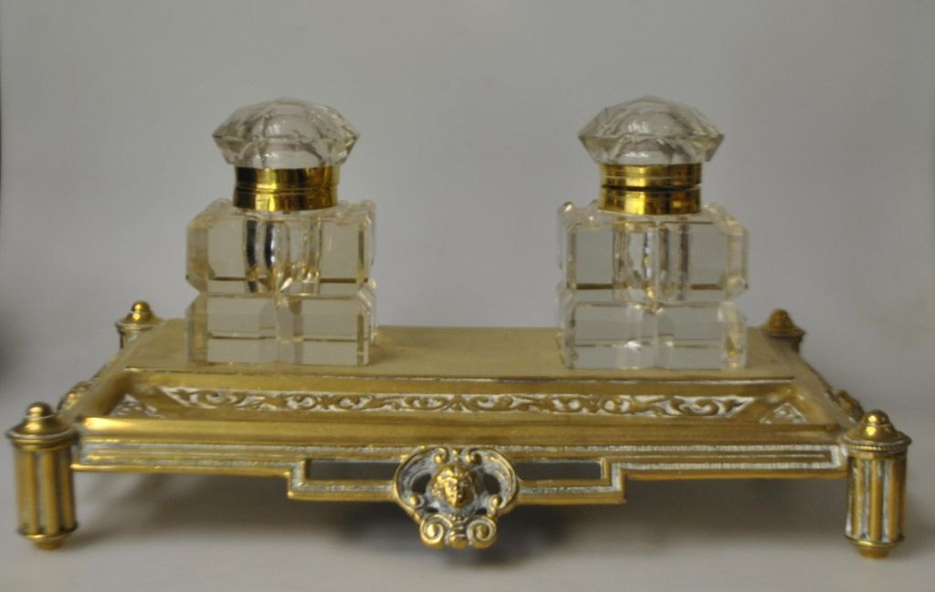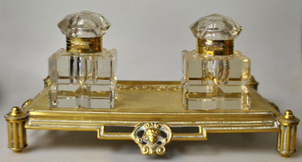 Antikt skrivesæt i messing med krystal beholdere, 19. årh. Tyskland.