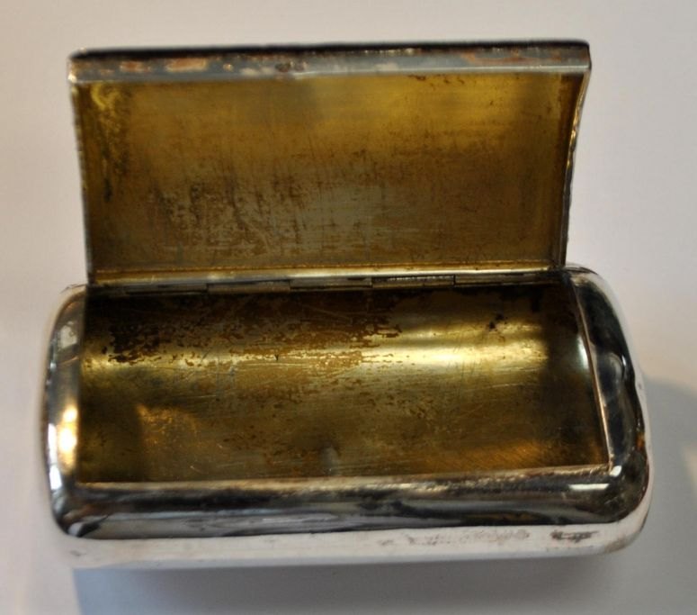 Svensk snus tobaks æske i sølv, 19. årh. Med dekoration på låg. Indvendig forgyldt. Stemplet. 8 cm. B: 5 cm.Emne nummer: 28375