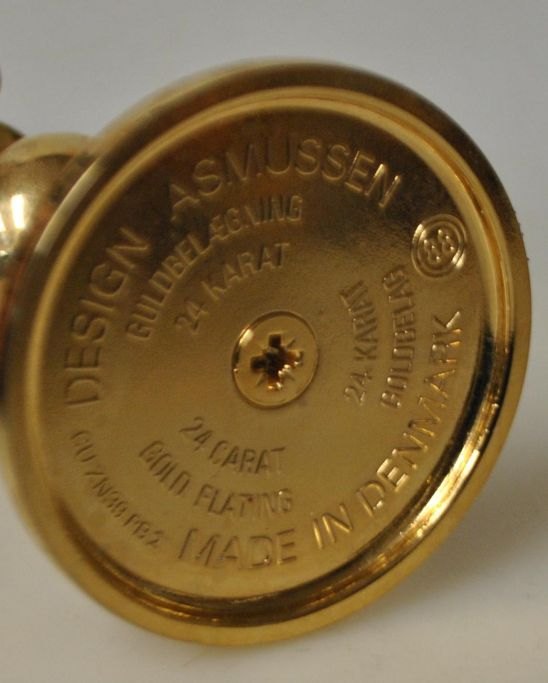 Asmussen dråbestage, 20. årh. Middelfart. Danmark. Forgyldt messing. Stemplet. Højde.: 12 cm. Med to dråber.Flot stand!